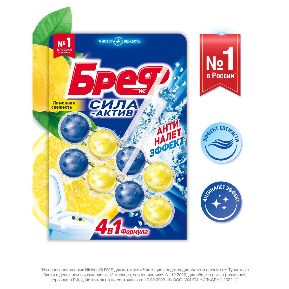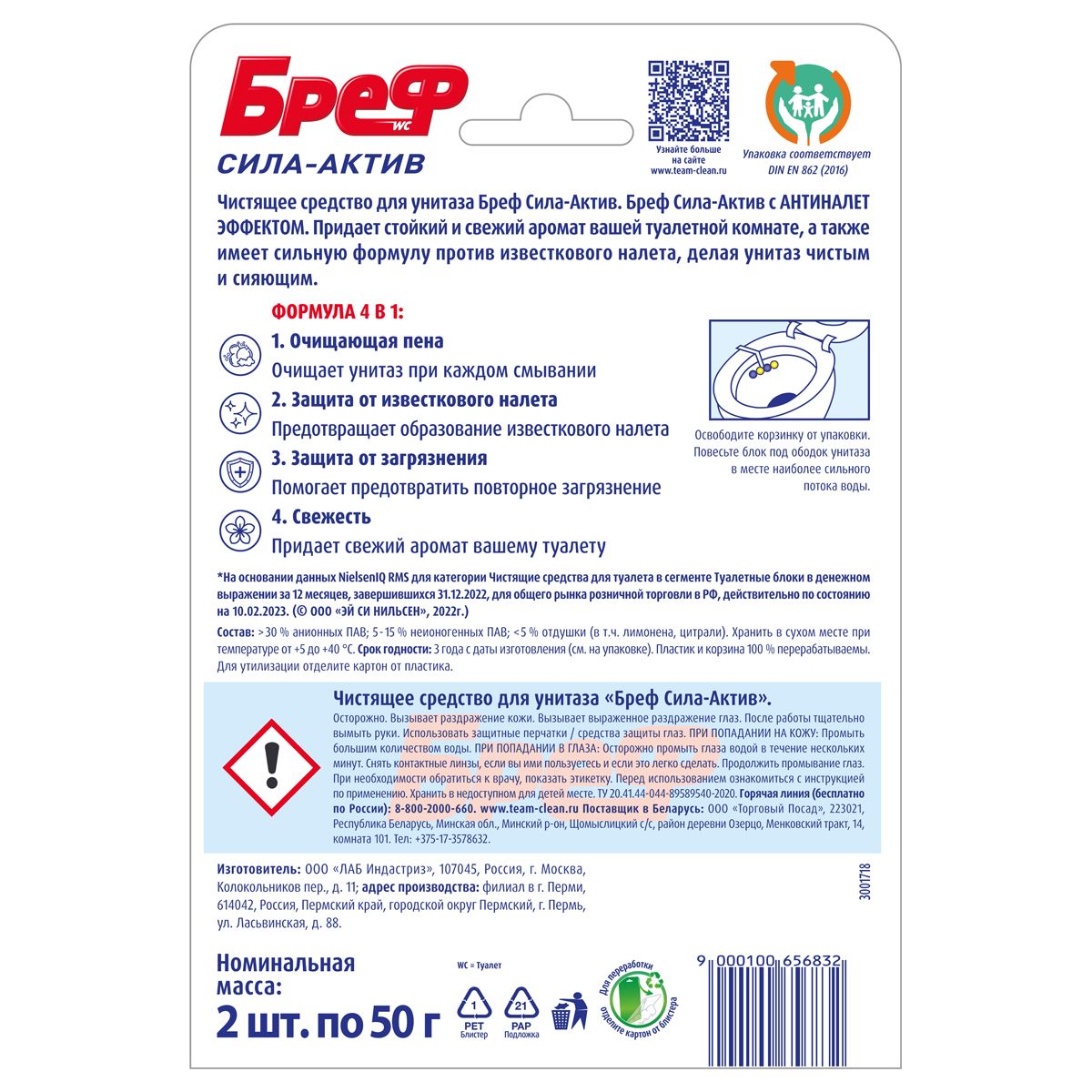 Подвесной блок для унитаза Бреф "Сила-Актив", лимонная свежесть, 2*50г, блистер