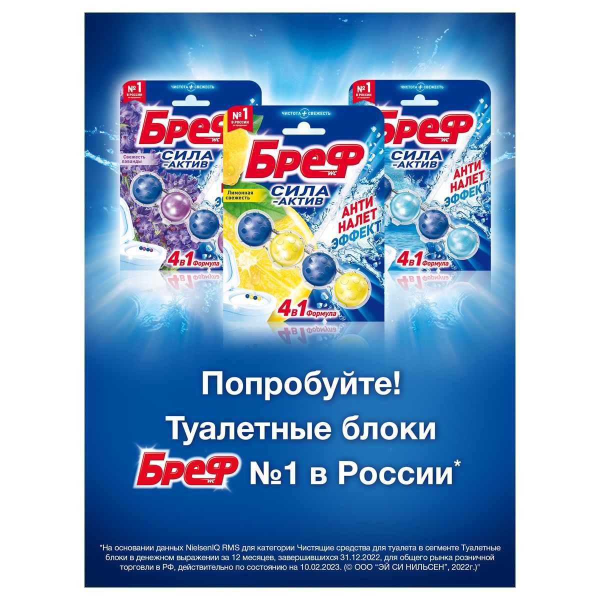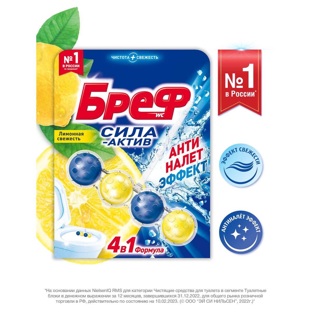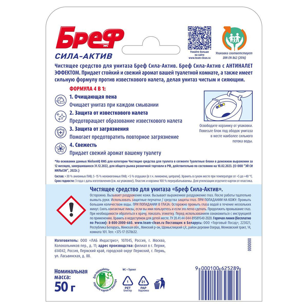 Подвесной блок для унитаза Бреф "Сила-Актив", лимонная свежесть, 50г, блистер