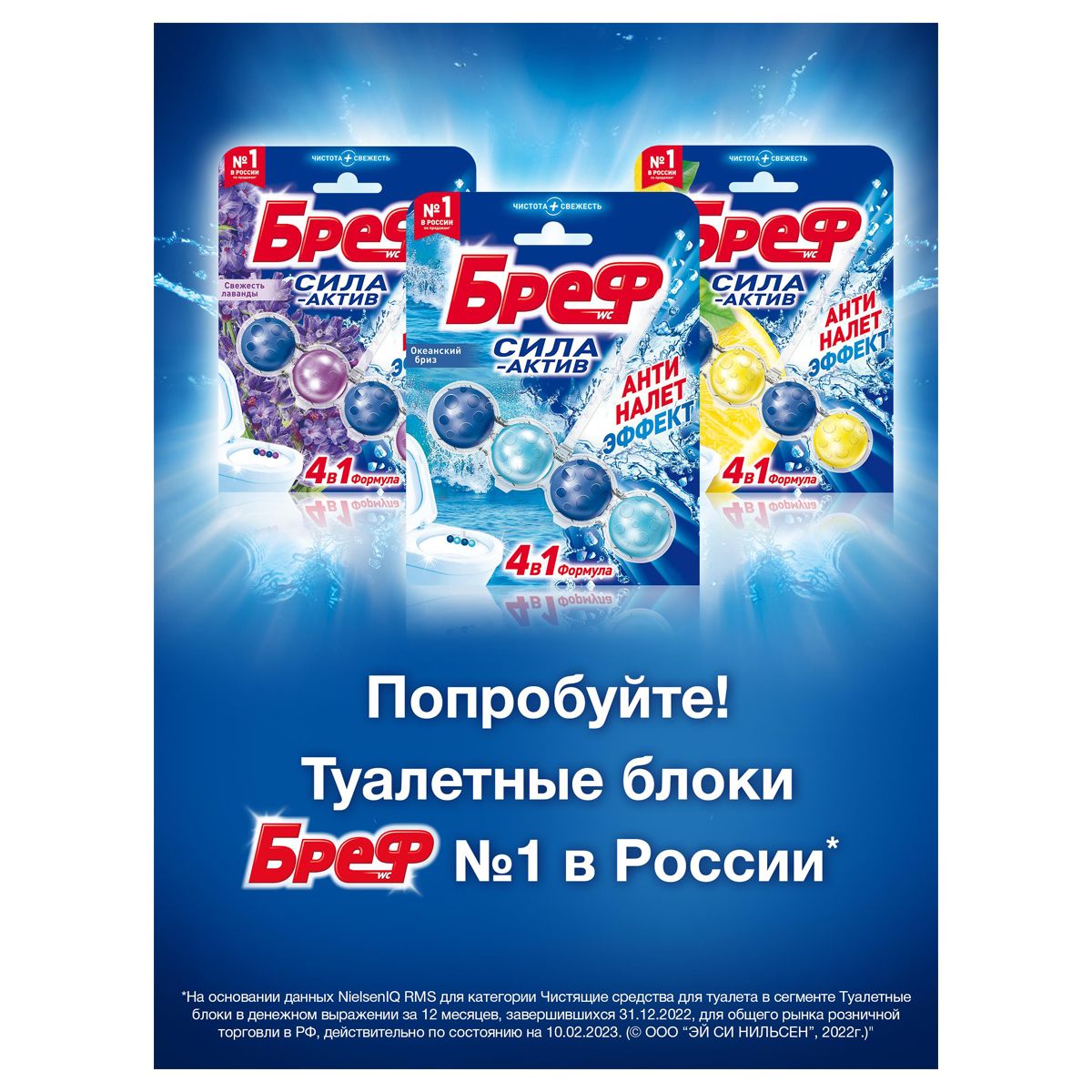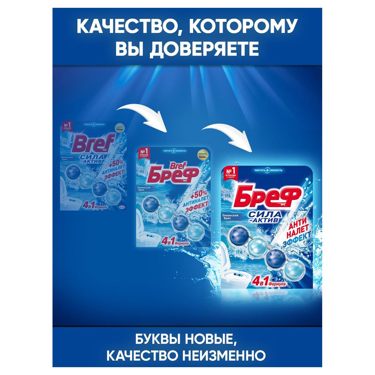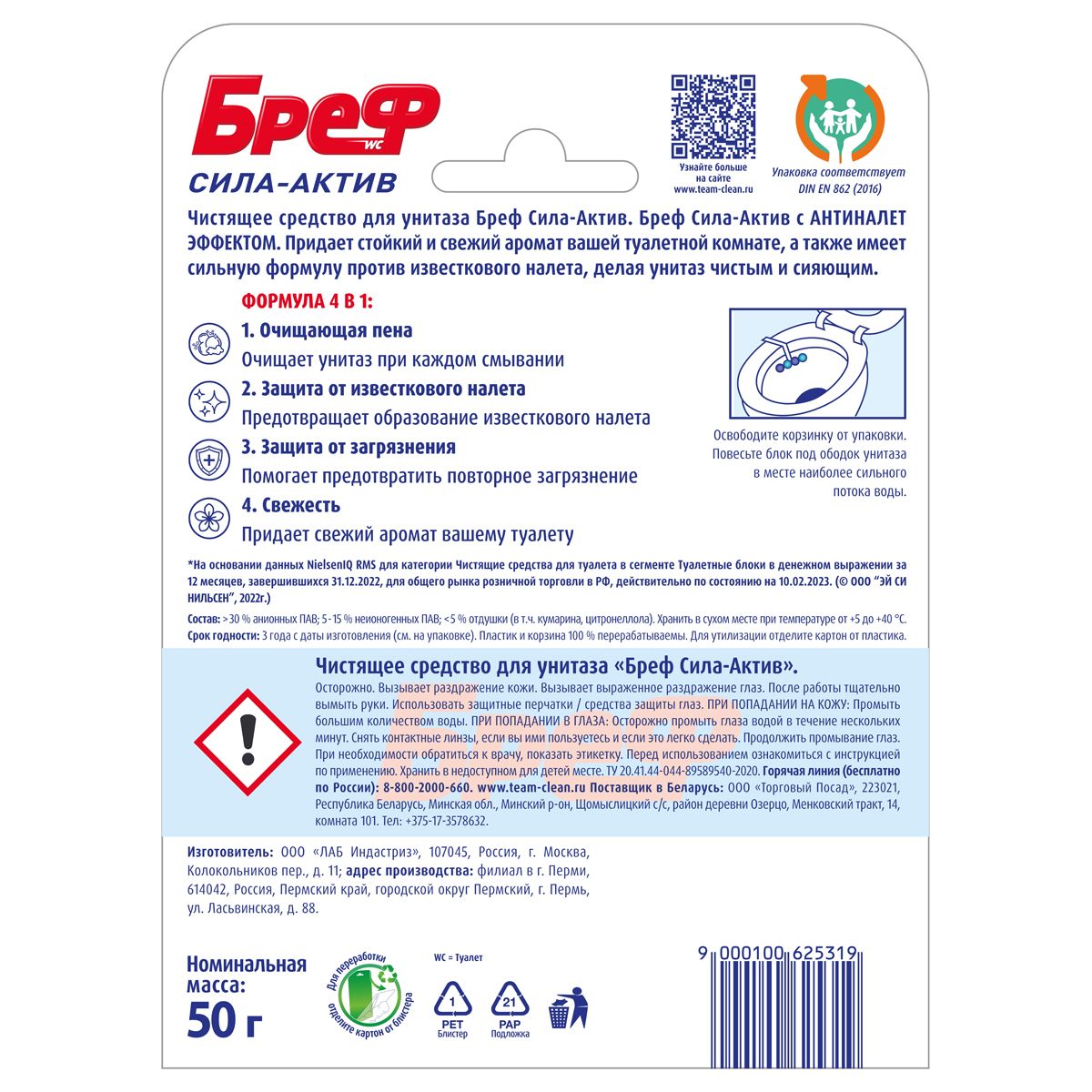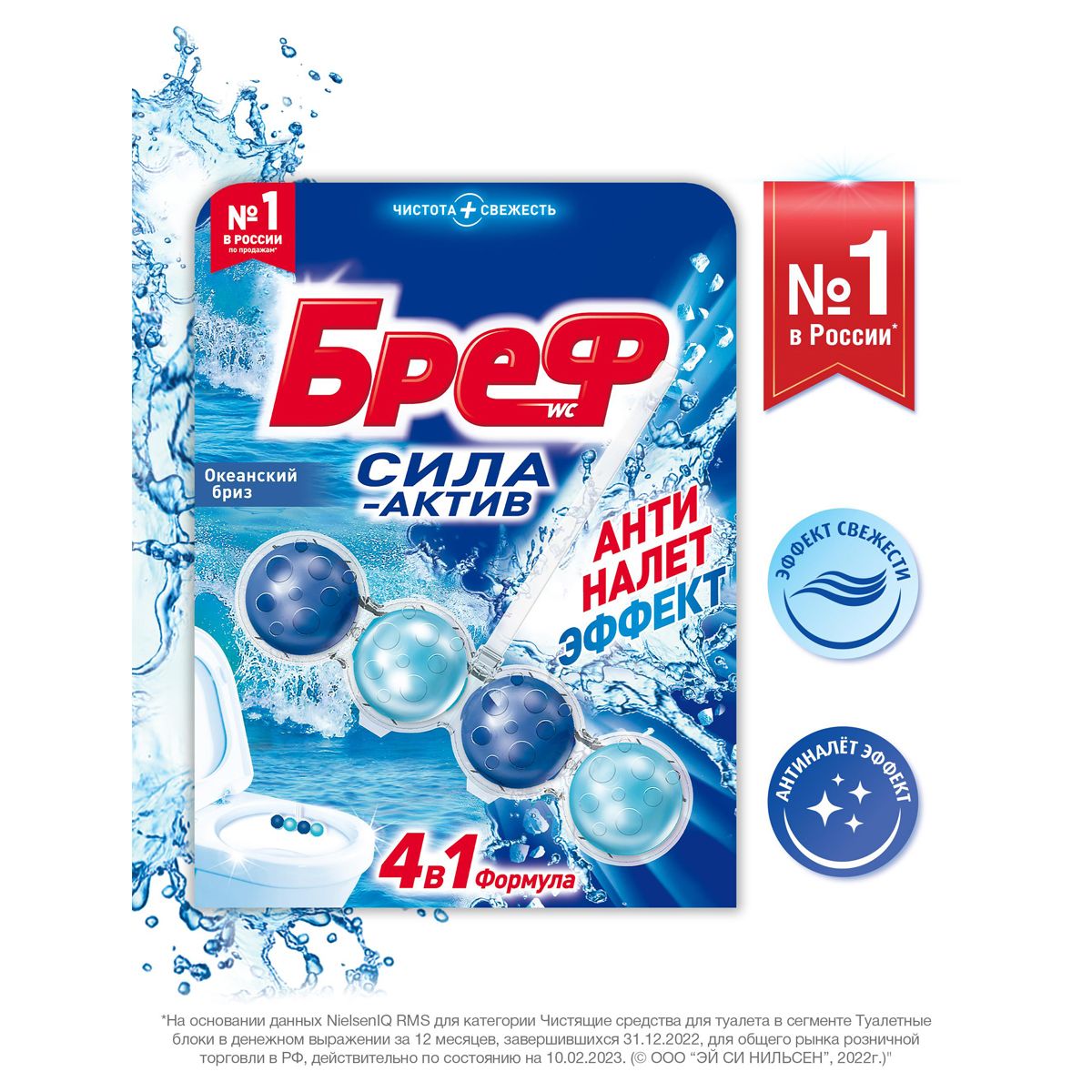 Подвесной блок для унитаза Бреф "Сила-Актив", океанский бриз, 50г, блистер