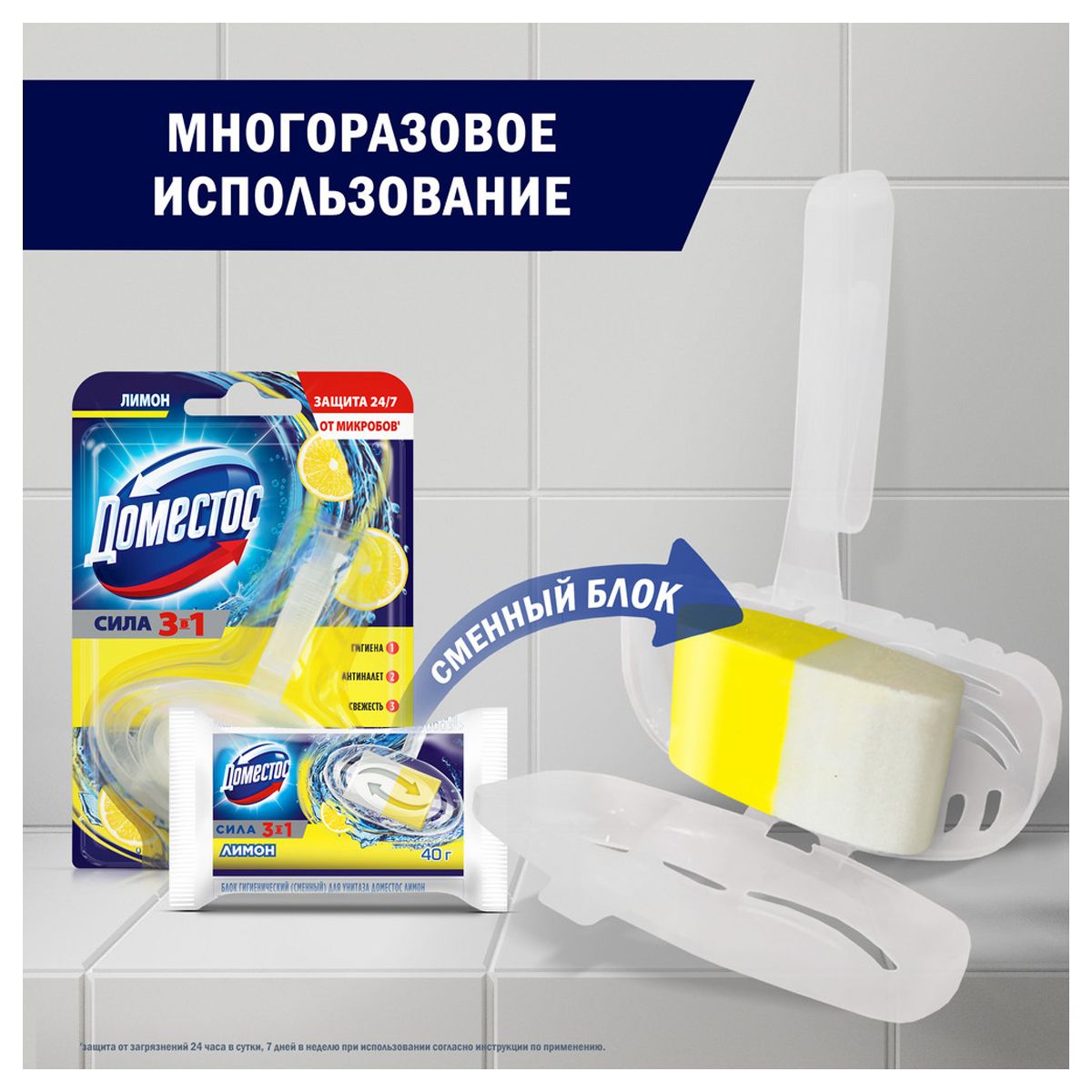 Подвесной блок для унитаза Domestos "3в1 Лимон", 40г, блистер