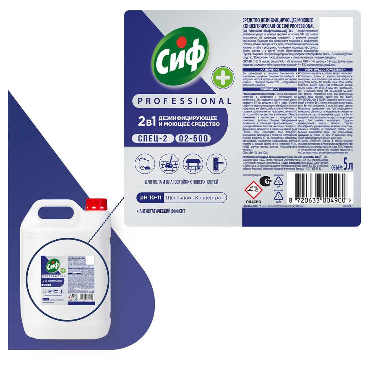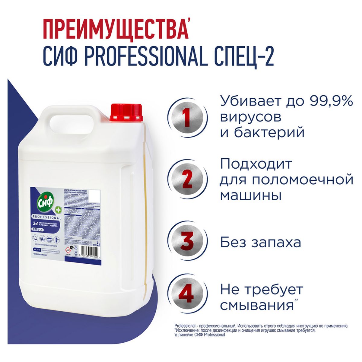 Средство моющее Сиф Professional дезифицирующее, концентрированное, низкопенное, нейтр.запах, канистра, 5л