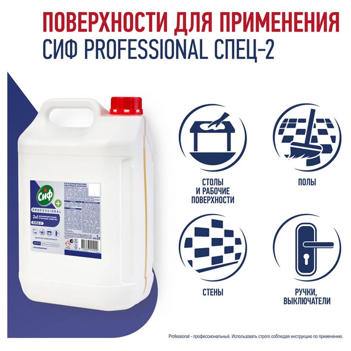 Cif Professional 5л концентрат отлично подходит для очищения поверхностей в различных помещениях, жесткой мебели, предметов обстановки, игрушек и санитарно-технического оборудования, а также поверхностей приборов и аппаратов. Можно обрабатывать столы и стулья, ручки и выключатели, полы и стены.