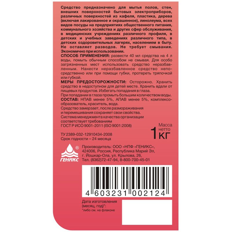 Состав: НПАВ менее 5%, АПАВ менее 5%. Разрешено на предприятиях общественного питания, пищевой промышленности, в лечебно-профилактических, детских школьных и дошкольных учреждениях, на объектах сферы обслуживания и в быту населением.