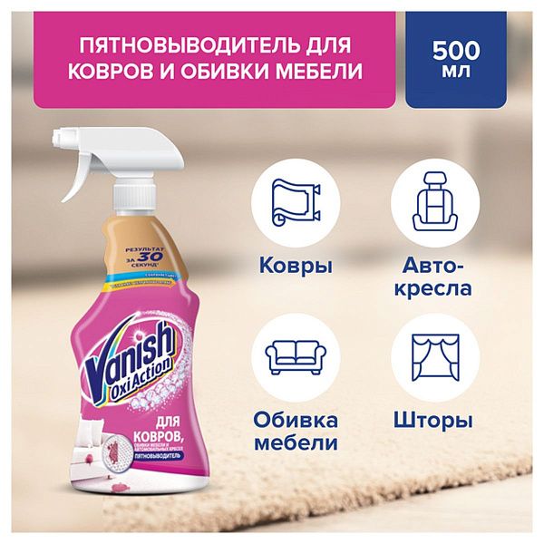 Нанесите средство на загрязнённые участки, дайте время для воздействия, затем удалите влажной тряпкой или пылесосом. Следуйте инструкции на упаковке.