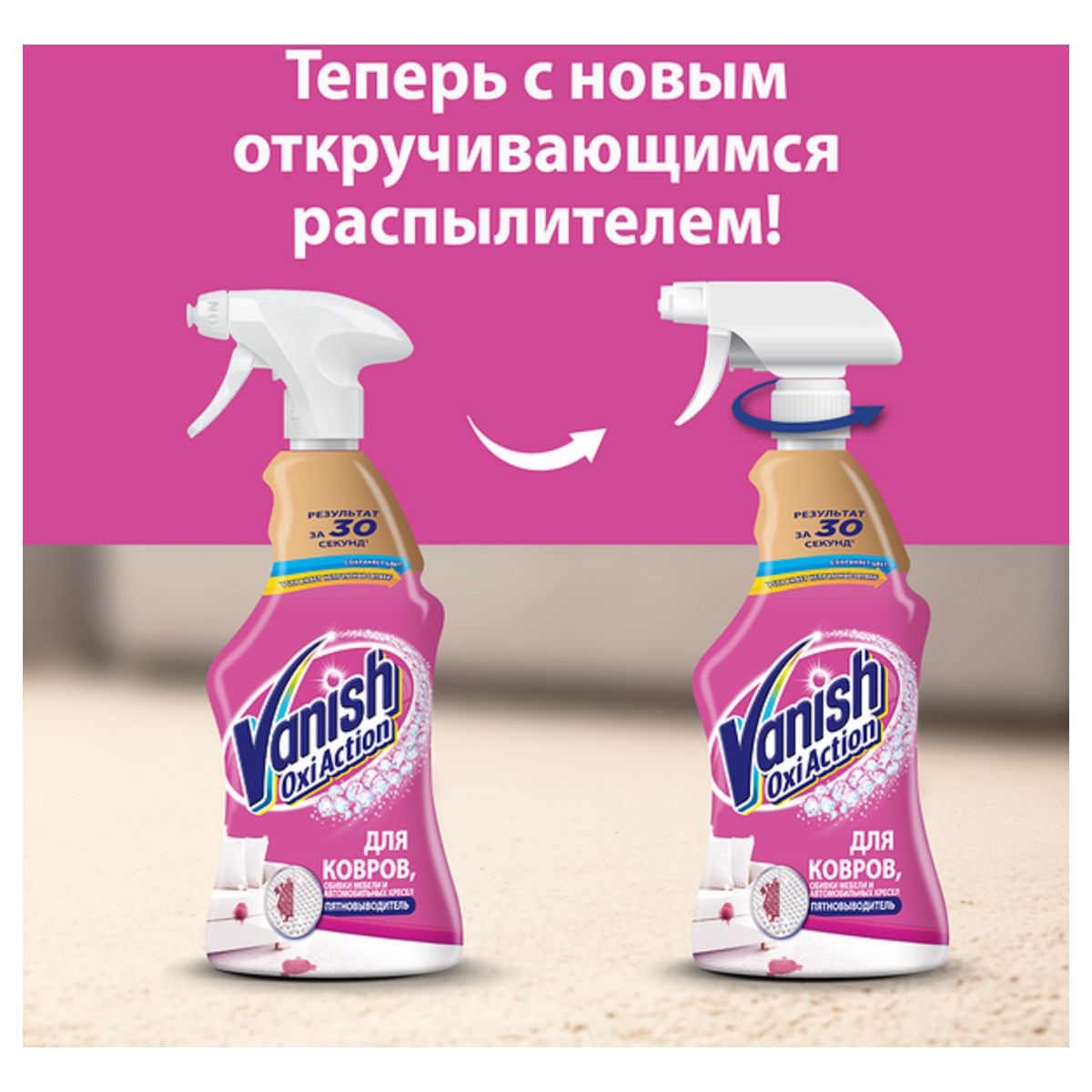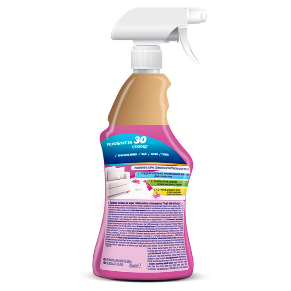 Средство для чистки ковров и обивки Vanish "Gold. Oxi Action", пятновыводитель, 500мл, спрей