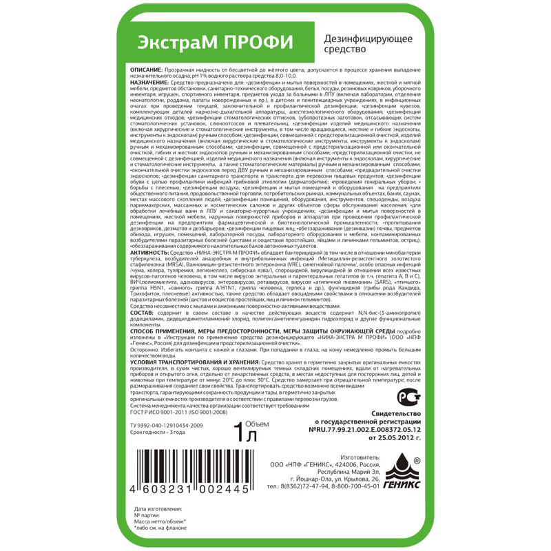 Дезинфицирующее средство Ника "Экстра М Профи", 1л