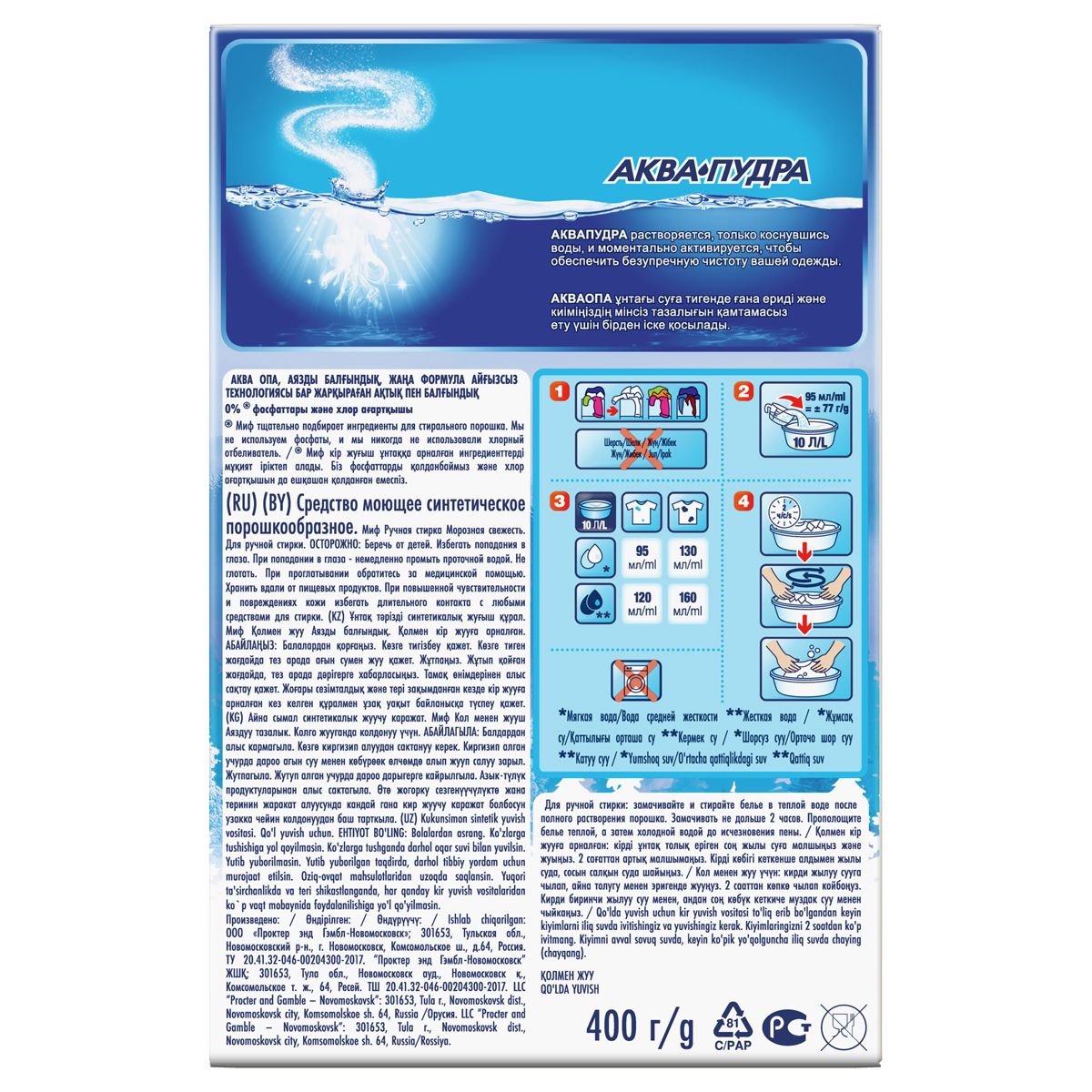 Порошок для ручной стирки Миф 3в1 "Морозная свежесть", 400г