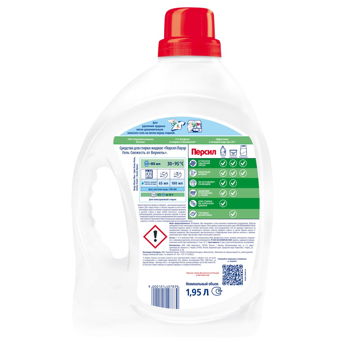 Гель для стирки Персил "Свежесть от Вернель", для белого белья, 1,95л
