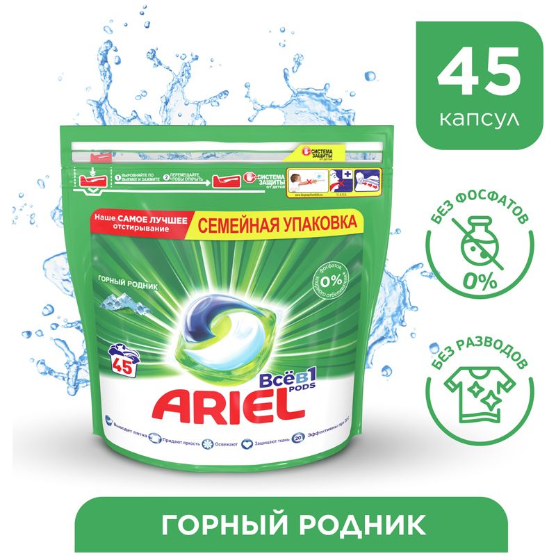 Капсулы для машинной стирки Ariel "Горный родник", 3в1 Pods, 45шт.*25,2г (ПОД ЗАКАЗ)