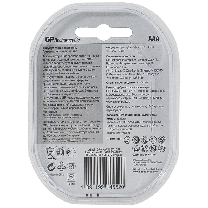 · Все заводы GP Batteries сертифицированы по международной системе контроля качества продукции ISO9001, 9002 и 14001.