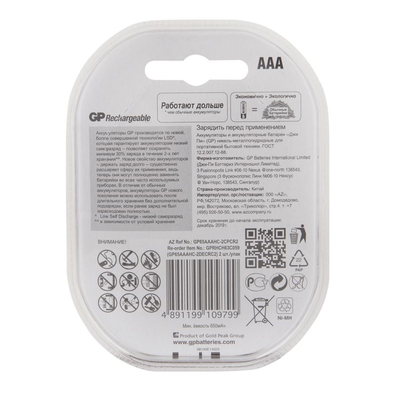 Аккумулятор GP AAA (HR03) 650mAh 2BL