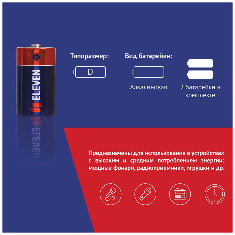 Батарейка Eleven D (LR20) алкалиновая, BC2