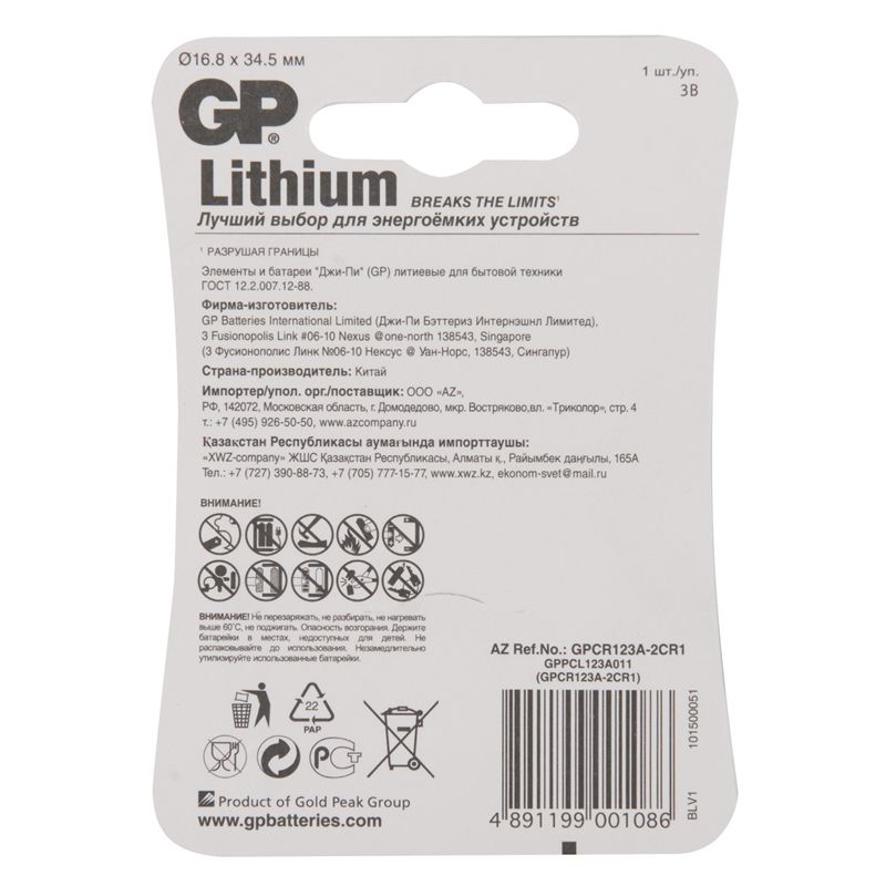 Батарейка GP CR123A (DL123A, CR17345) литиевая BL1