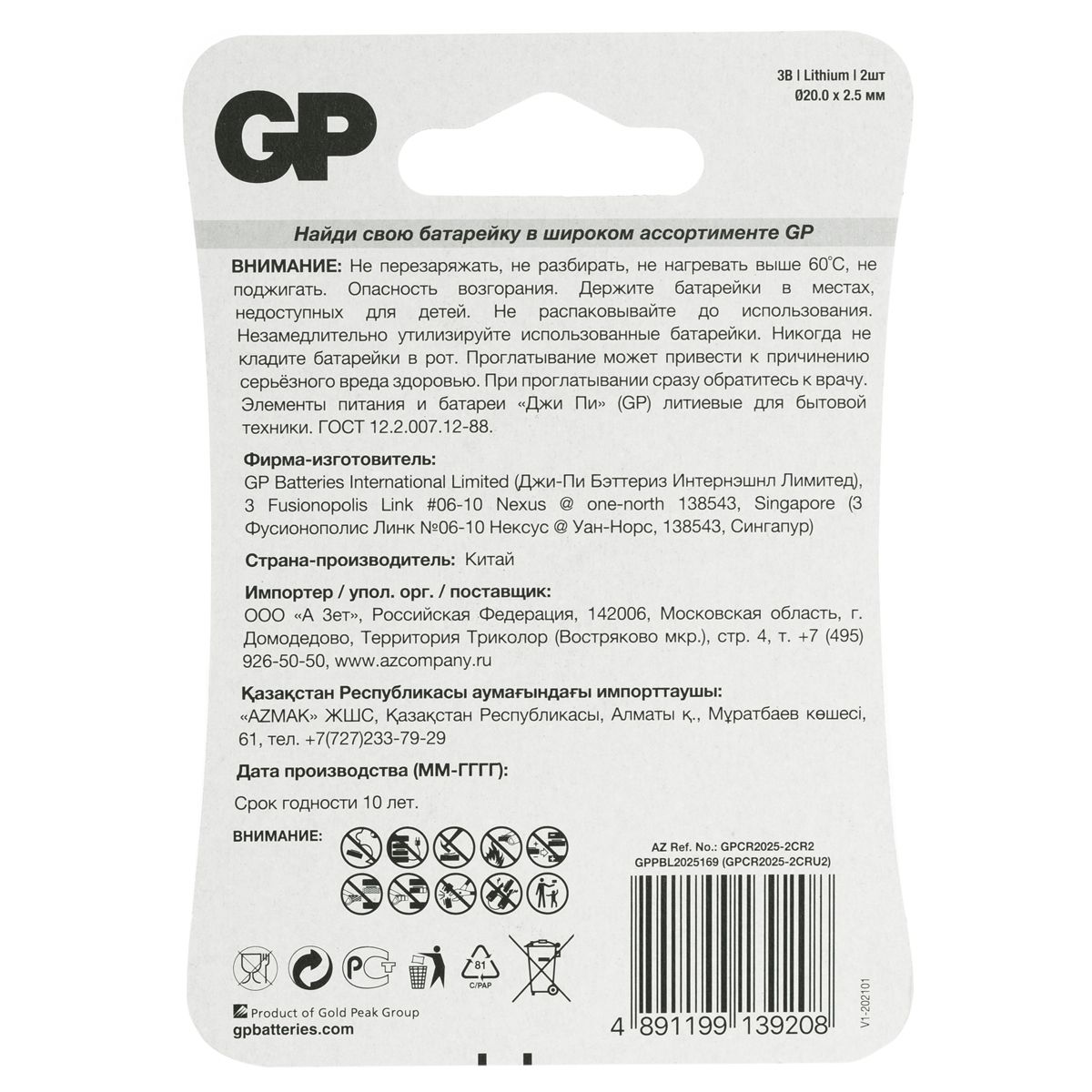 Батарейка GP CR2025 (DL2025) литиевая BC2