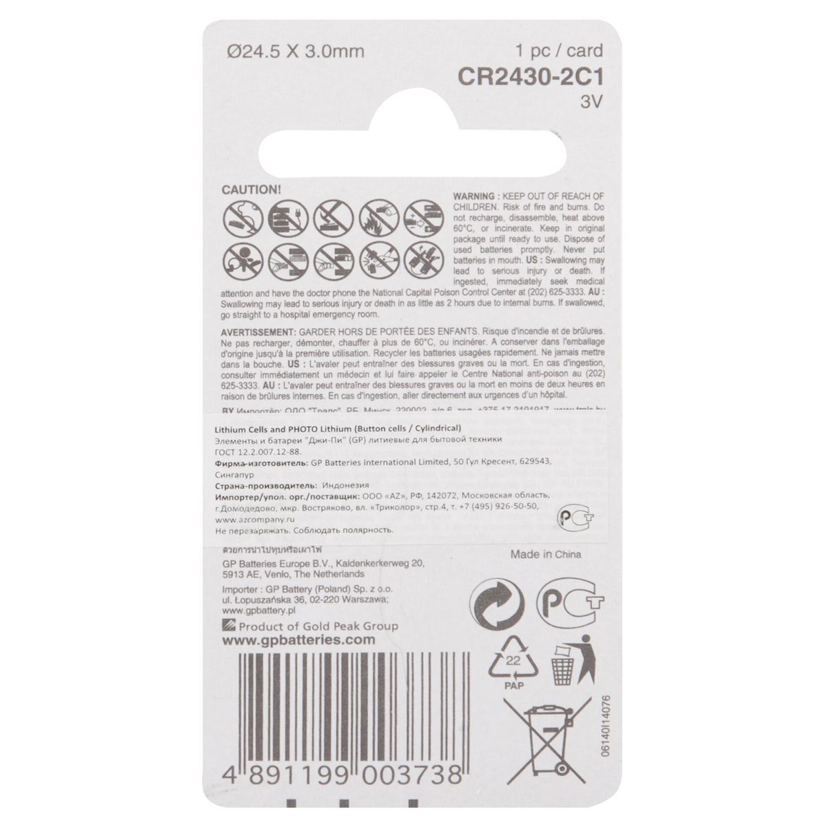 Батарейка GP CR2430 (DL2430) литиевая, BC1