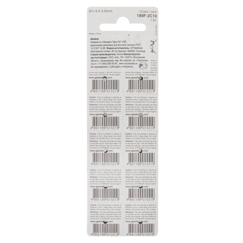Батарейка GP LR54 (G10, V10GA, LR1130, 189, 189A) алкалиновая, BC10