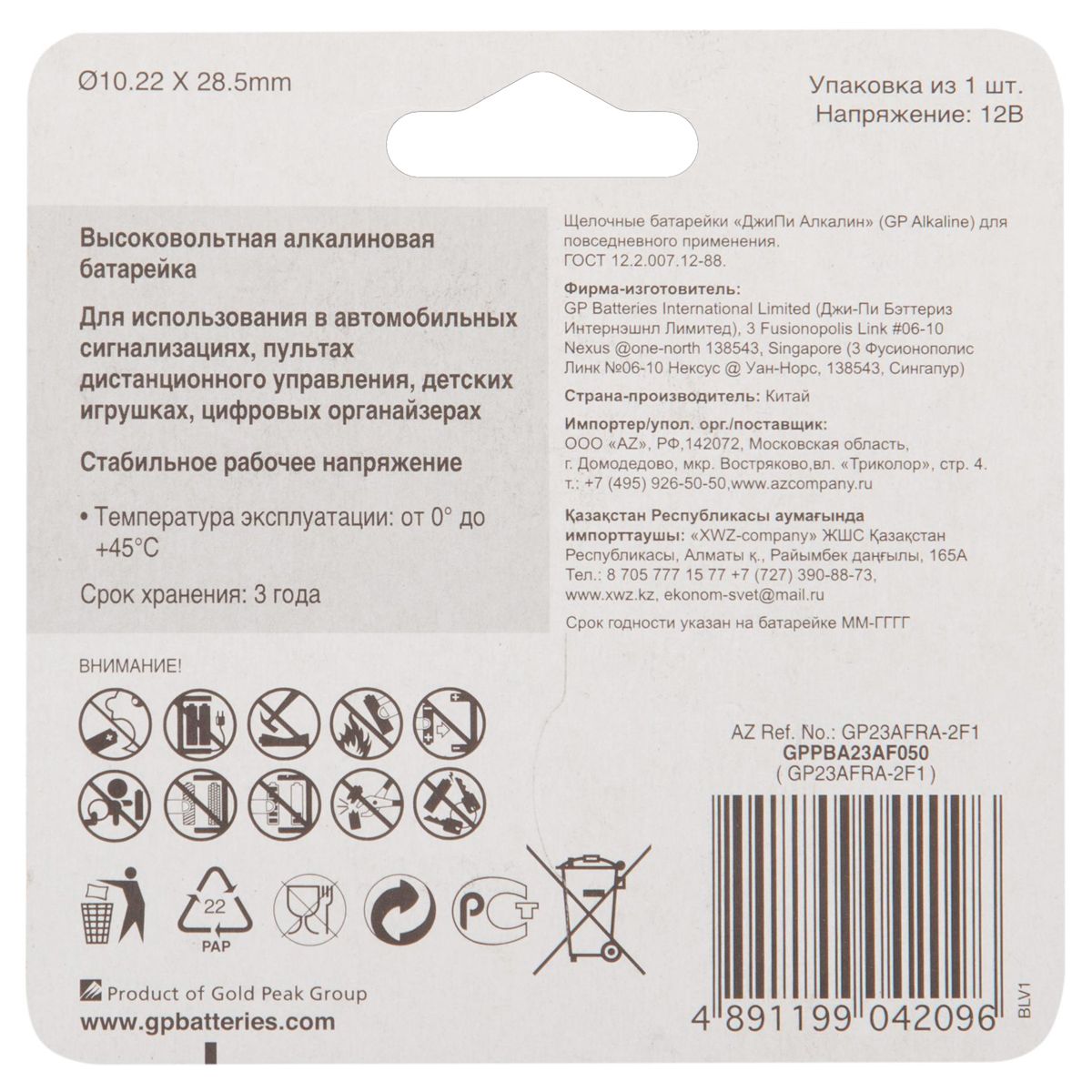 Батарейки GP 23A не содержат ртути и кадмия.