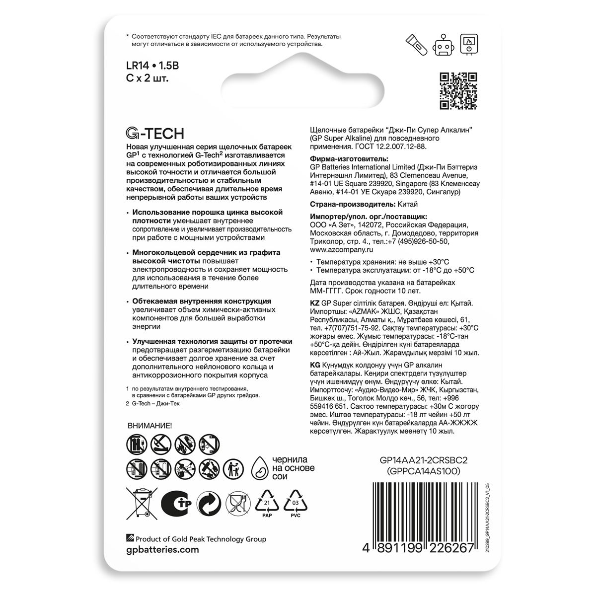 Батарейка GP Super G-Tech C (LR14) 14A алкалиновая, BC2