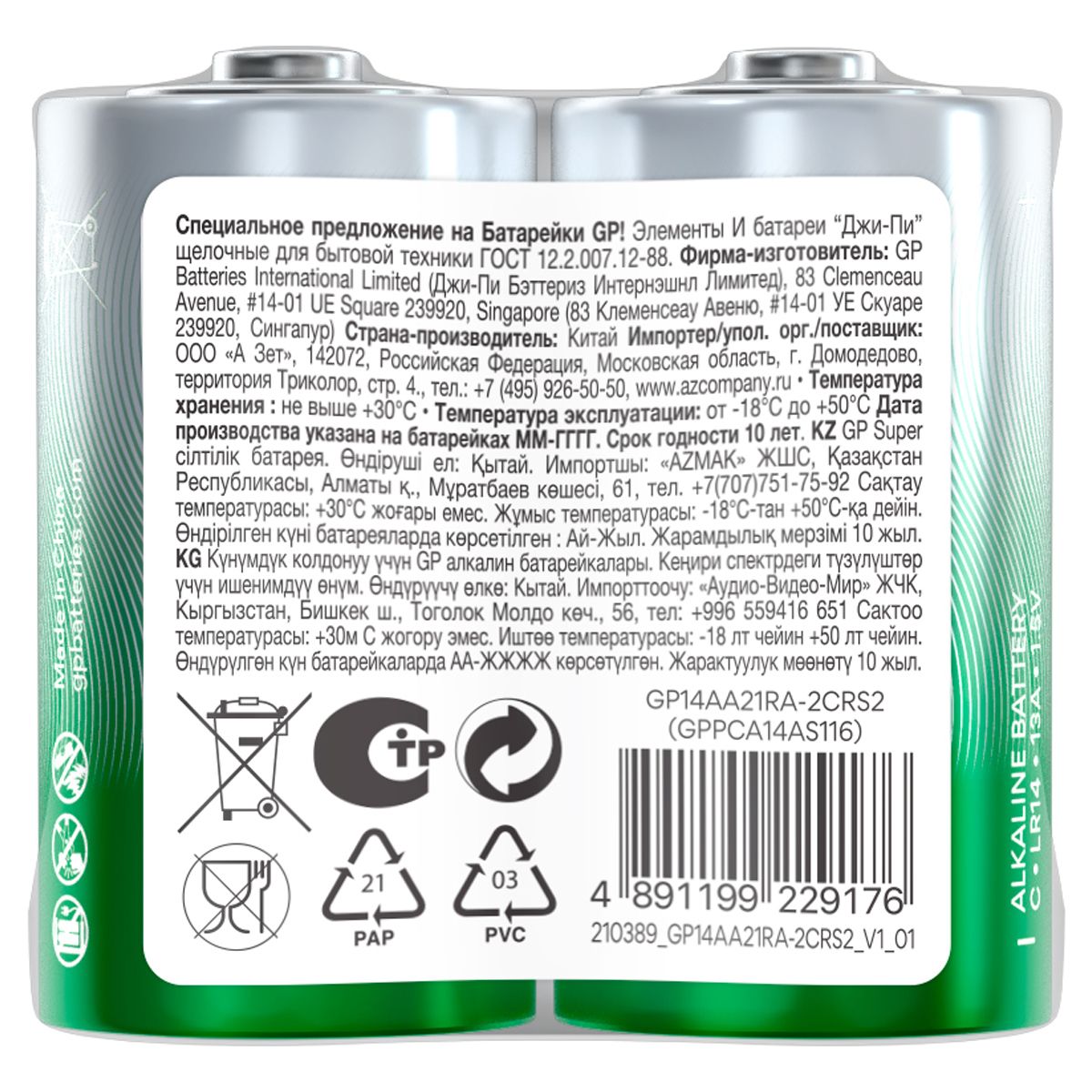 Все батарейки торговой марки GP сертифицированы согласно российскому стандарту ГОСТ и международным стандартам ISO9001 и ISO14001.