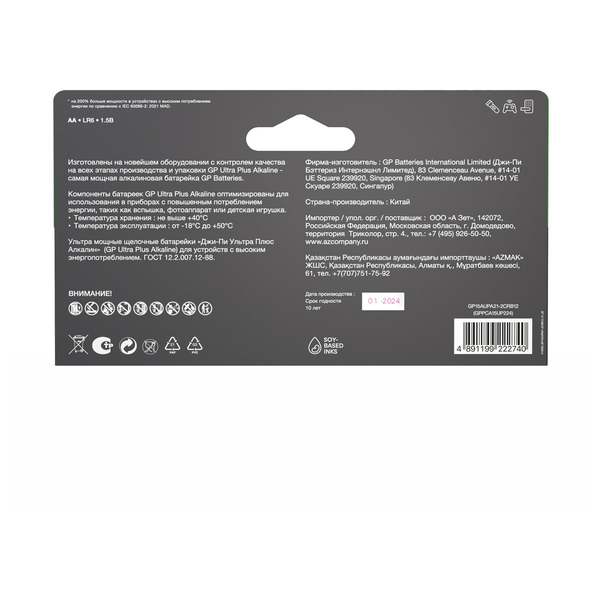 Батарейка GP Ultra Plus AA (LR6) 15AUP алкалиновая, BC12