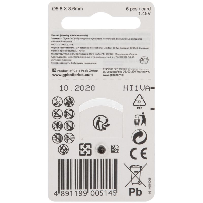 Батарейка GP ZA10F (PR70, AC10, DA230) воздушно-цинковая, BC6