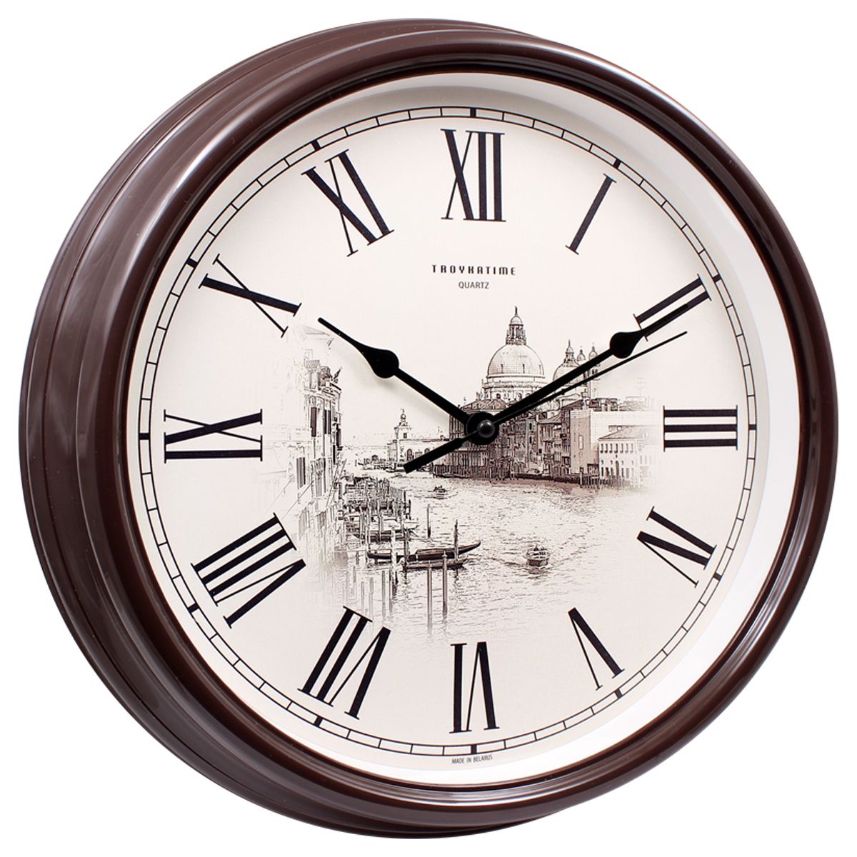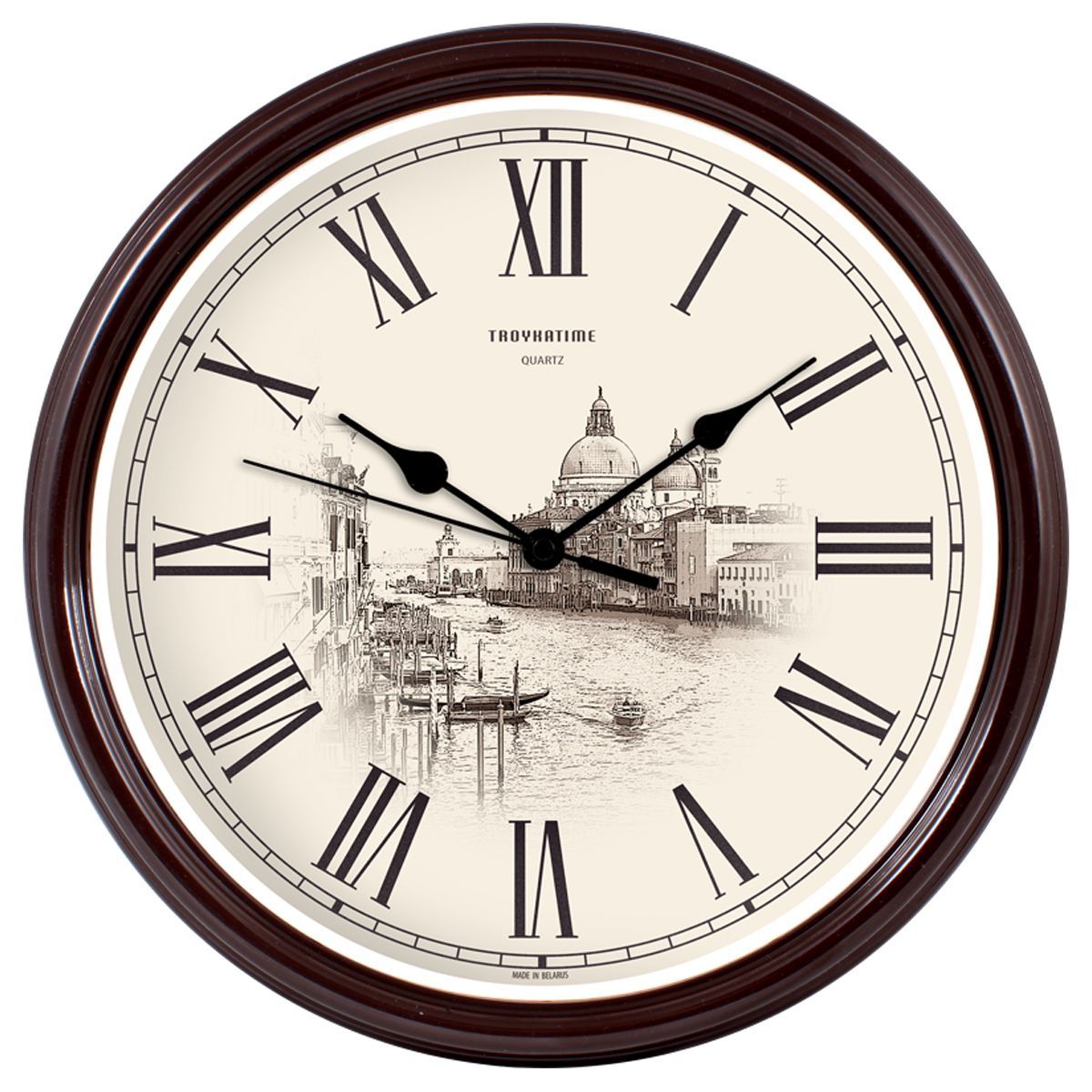 Часы настенные ход плавный, Troyka 88884888, круглые, 31*31*5, коричневая рамка