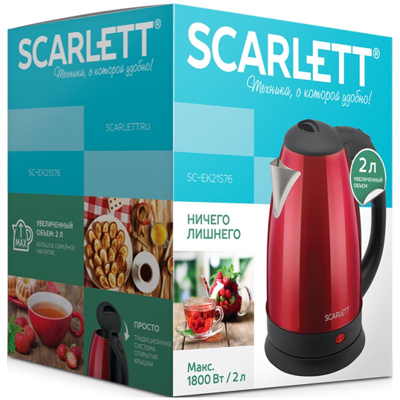 Чайник электрический Scarlett SC-EK21S76, 2л, 1800Вт, нержавеющая сталь, красный