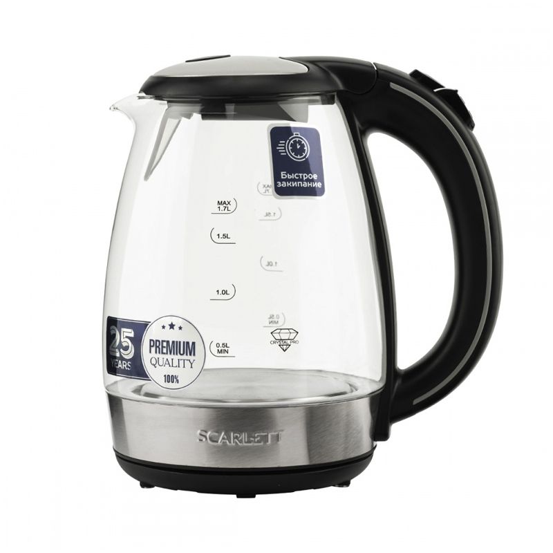 Чайник электрический Scarlett SC-EK27G93, 1,7л, 2200Вт, с подсветкой, стекло/пластик