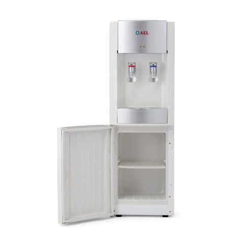 Кулер для воды LD-AEL-28c, напольный, НАГРЕВ/ОХЛАЖДЕНИЕ ЭЛЕКТРОННОЕ, шкафчик 10 л, 2 крана, белый/серебристый, 00257