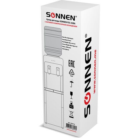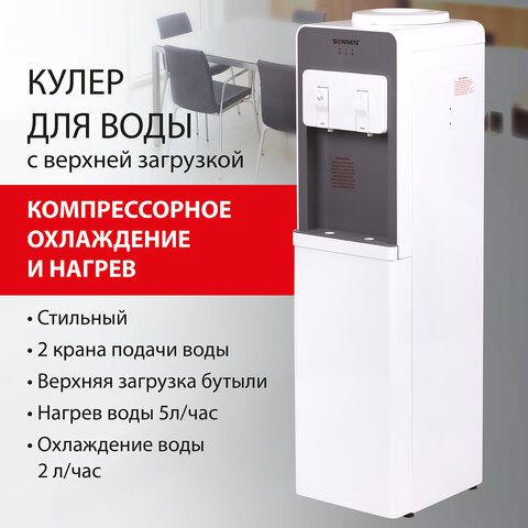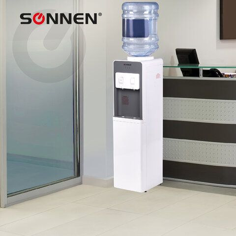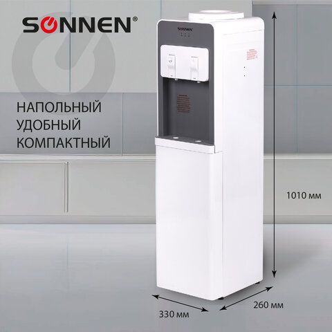 Кулер для воды SONNEN FSC-02BA, напольный, НАГРЕВ/ОХЛАЖДЕНИЕ КОМПРЕССОР, шкаф, 2 крана, серый, 455416