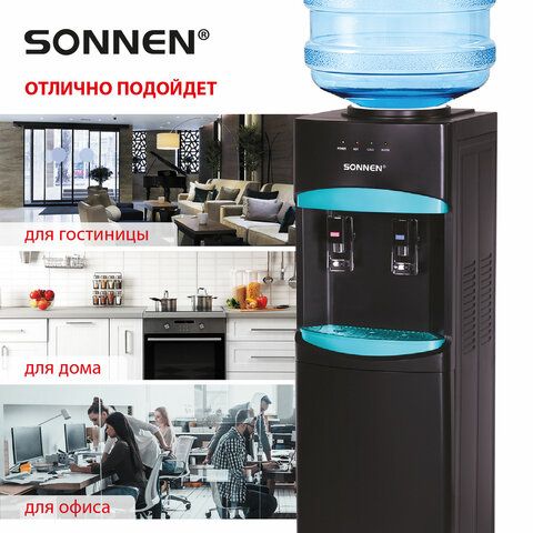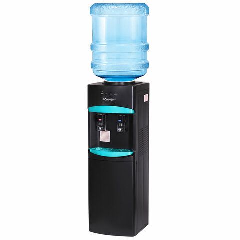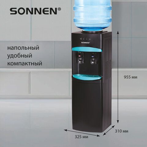 Кулер для воды SONNEN FSC-02W TURBO напольный, ТУРБОНАГРЕВ/ОХЛАЖДЕНИЕ КОМПРЕССОРНОЕ, шкаф, 2 крана, черный, 456171
