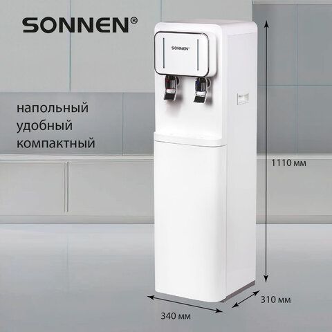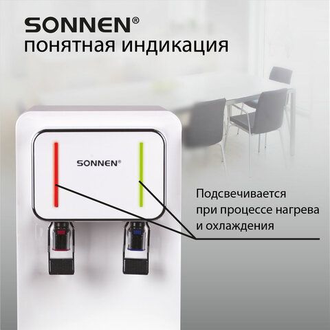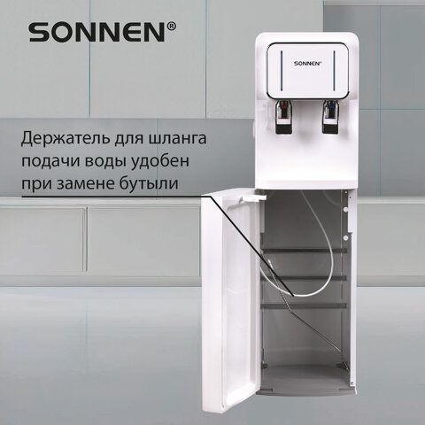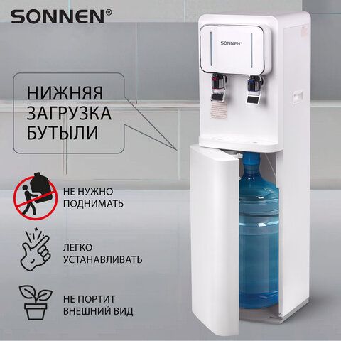 Кулер для воды SONNEN FSE-02BW, напольный, нагрев/охлаждение, НИЖНЯЯ ЗАГРУЗКА, 2 крана, белый, 456170