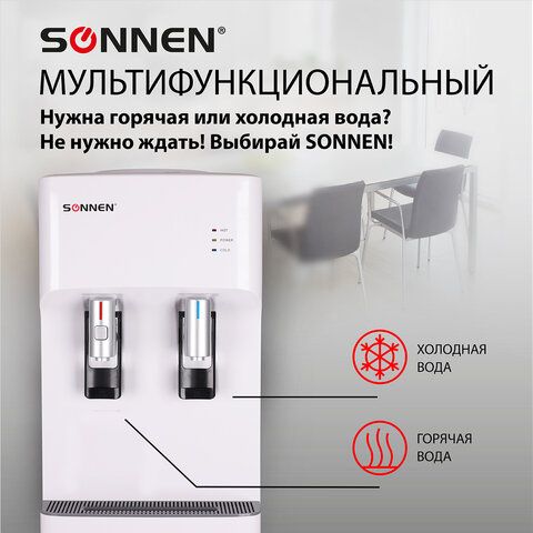 Кулер для воды SONNEN FSE-02H, напольный, НАГРЕВ/ОХЛАЖДЕНИЕ ЭЛЕКТРОННОЕ, 2 крана, белый, 454997