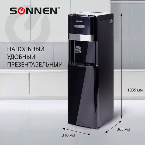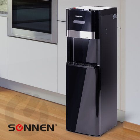 Кулер для воды SONNEN FSE-03B, напольный, нагрев/охлаждение, НИЖНЯЯ ЗАГРУЗКА, 3 крана, черный, 454998