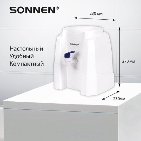 Кулер-водораздатчик БЕЗ НАГРЕВА И ОХЛАЖДЕНИЯ, SONNEN TS-01W, настольный, 1 кран, белый, 456175