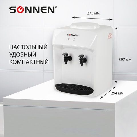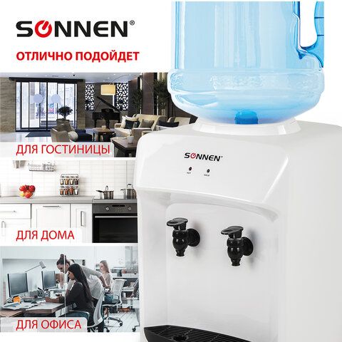 Кулер-водораздатчик БЕЗ НАГРЕВА И ОХЛАЖДЕНИЯ, SONNEN TS-01WT, настольный, 2 крана, белый, 455411