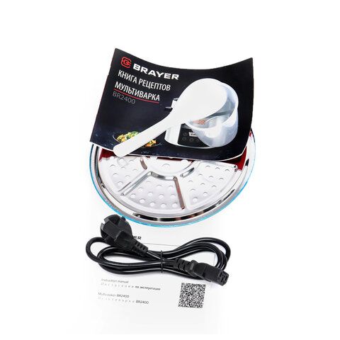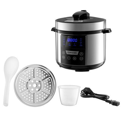 Мультиварка-скороварка BRAYER BR2400, 900 Вт, 5 л, 12 программ, серебро