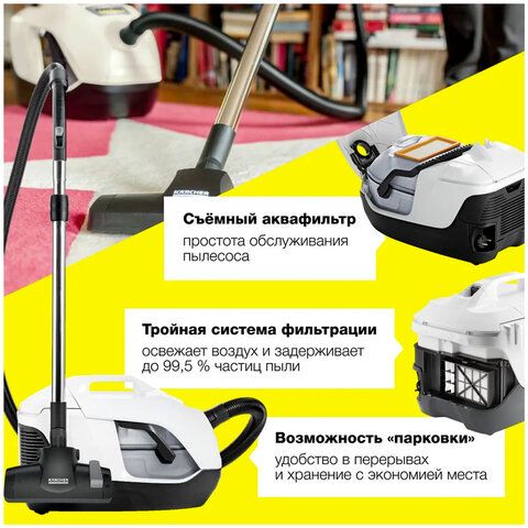 - Тип уборки — сухая, влажная или комбинированная. Для аллергиков лучше выбрать модели с HEPA-фильтром или аквафильтрацией.