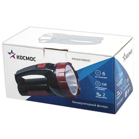 Фонарь аккумуляторный КОСМОС 5 Вт LED, выдвижная вилка, заряд от сети, KOCAc9105WLED