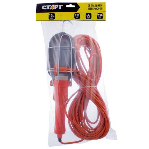 Светильник фонарь переноска СТАРТ, ударопрочный, провод 15 м, от сети, цоколь E27, CLB 101-15M, 14067