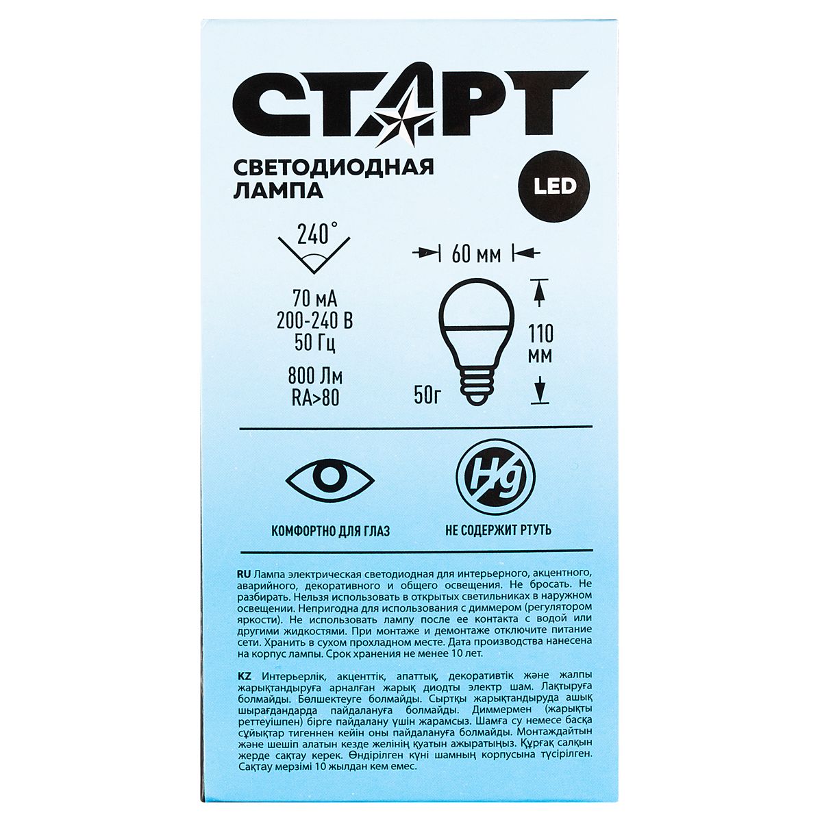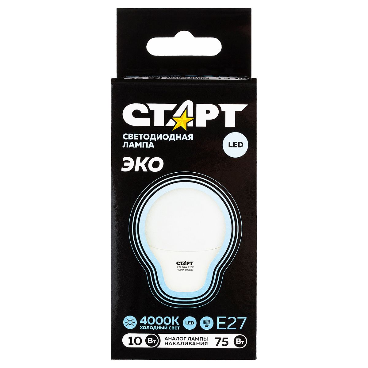 Лампа светодиодная Старт LED, серия "WS" 10W40, тип А "груша", E27, 4000К, нейтральный свет, 25000ч