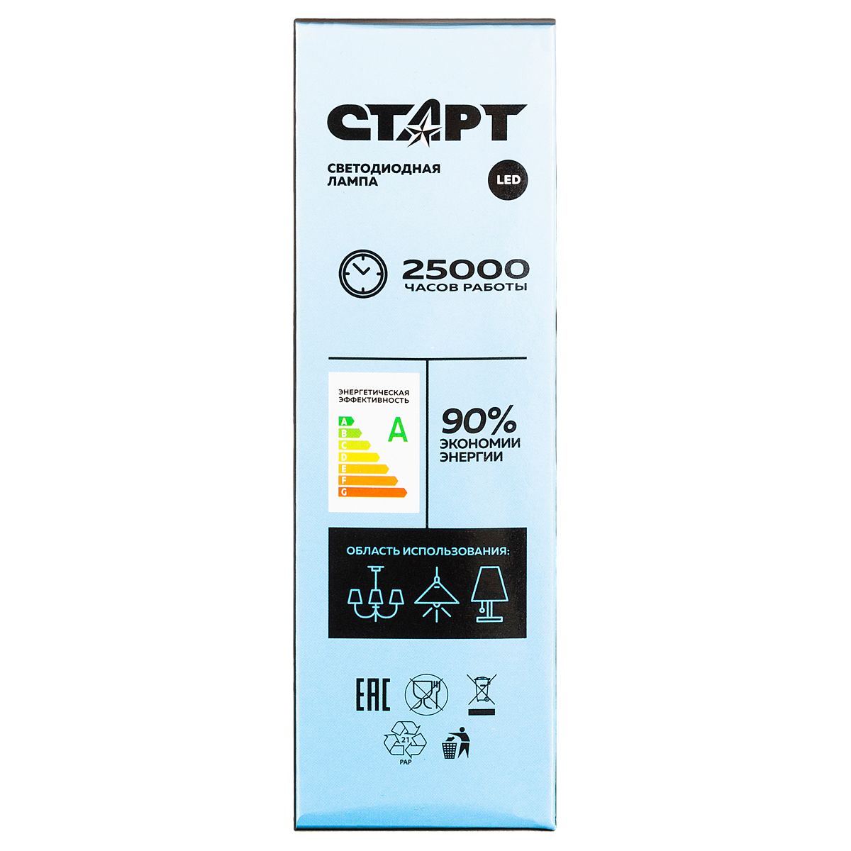 Использование светодиодной лампы СТАРТ на 90% экономичнее по сравнению с традиционными лампами накаливания. Срок службы составляет 25 000 часов.
