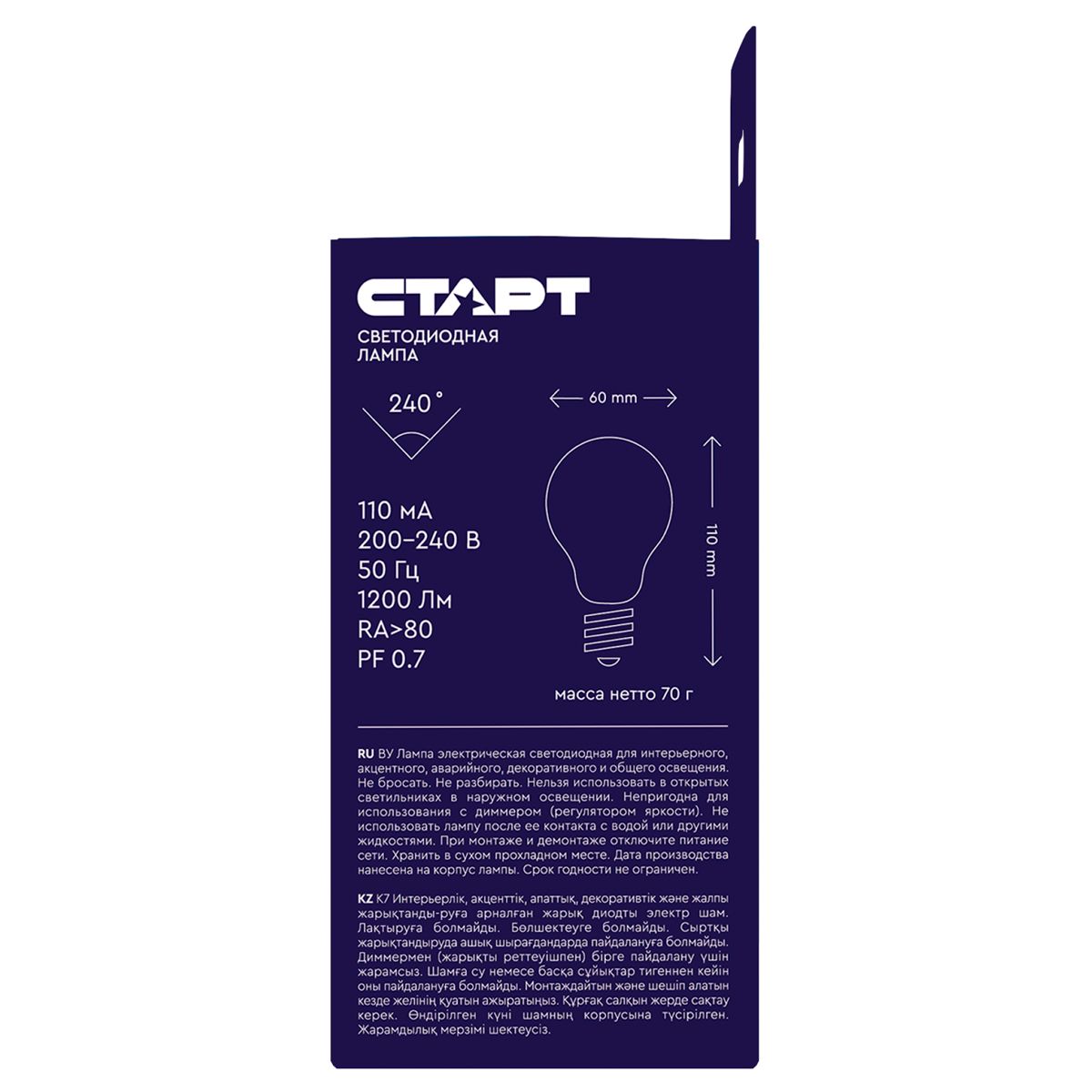 Лампа светодиодная Старт LED, серия "WS" 15W30, тип А "груша", E27, 2700К, теплый свет, 25000ч