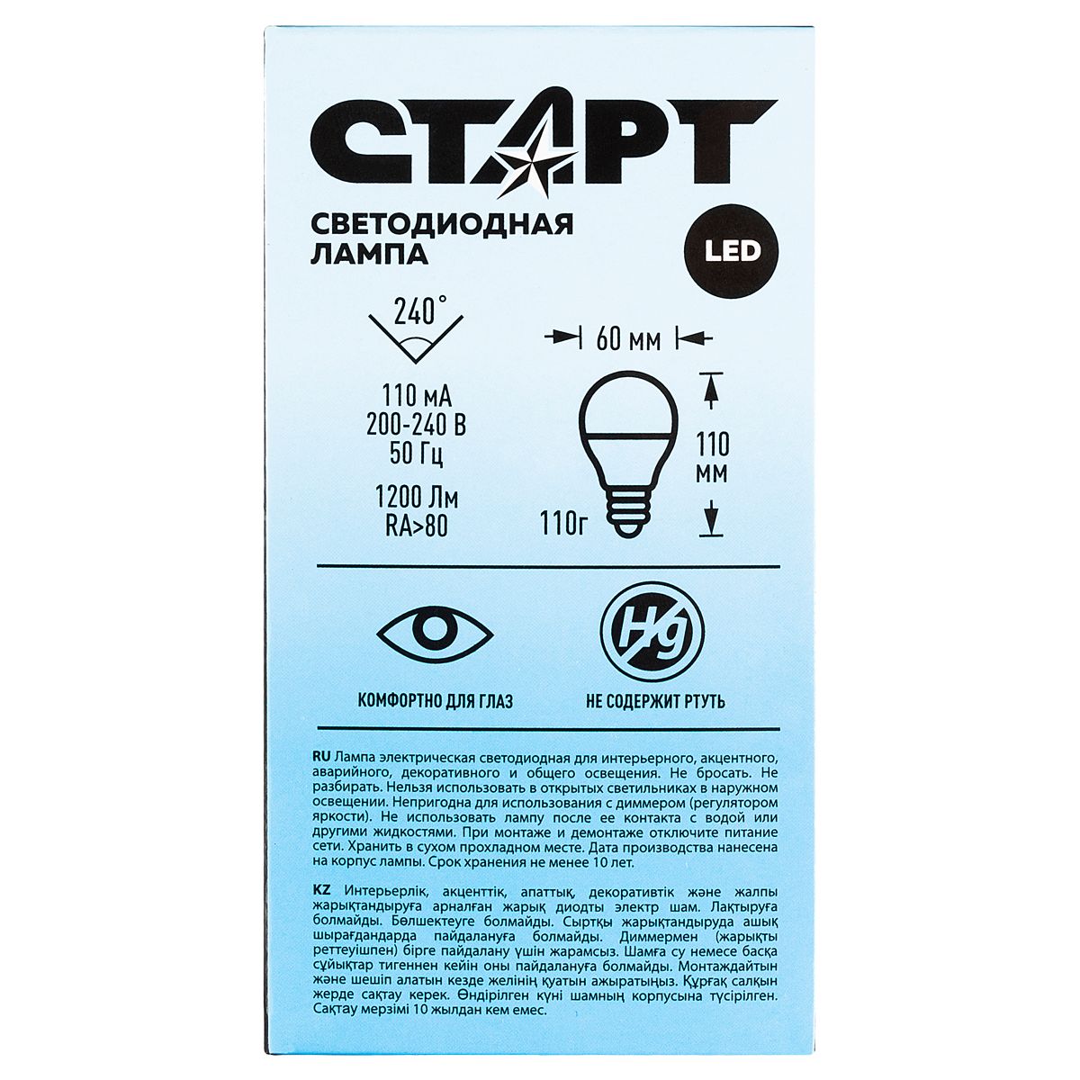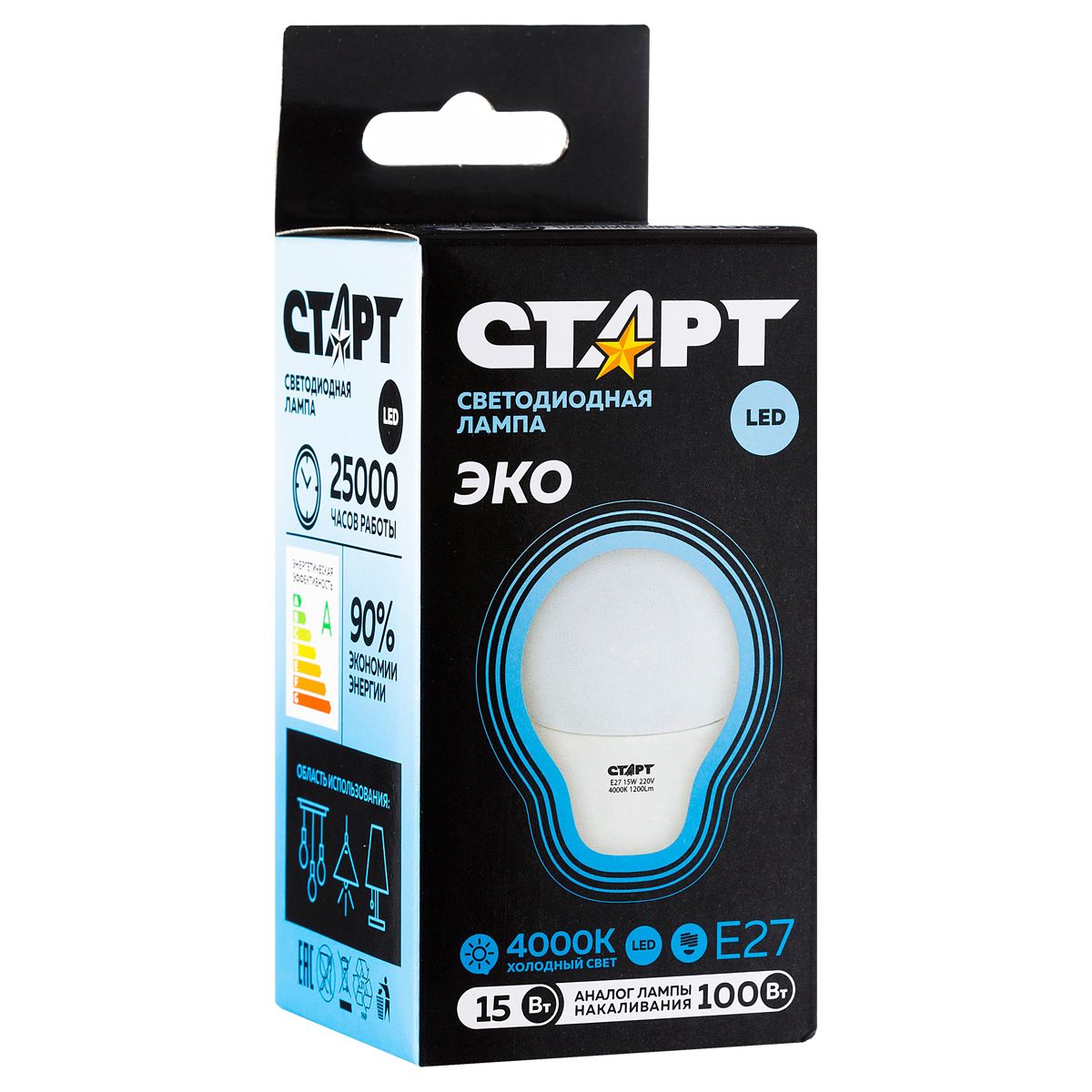 Лампа светодиодная Старт LED, серия "WS" 15W40, тип А "груша", E27, 4000К, нейтральный свет, 25000ч