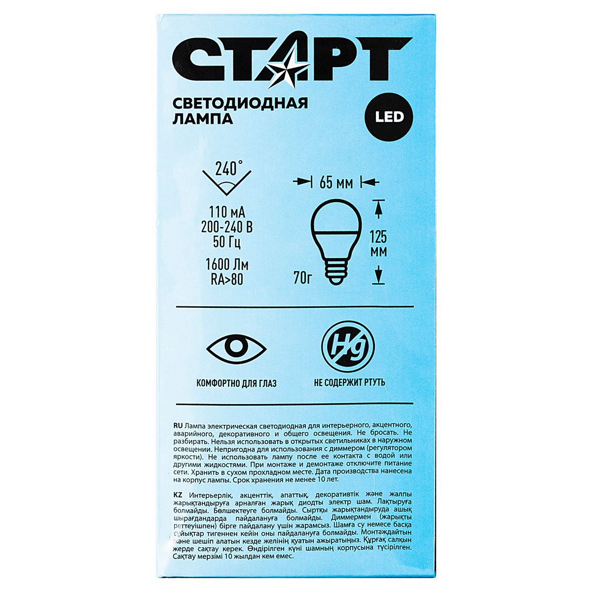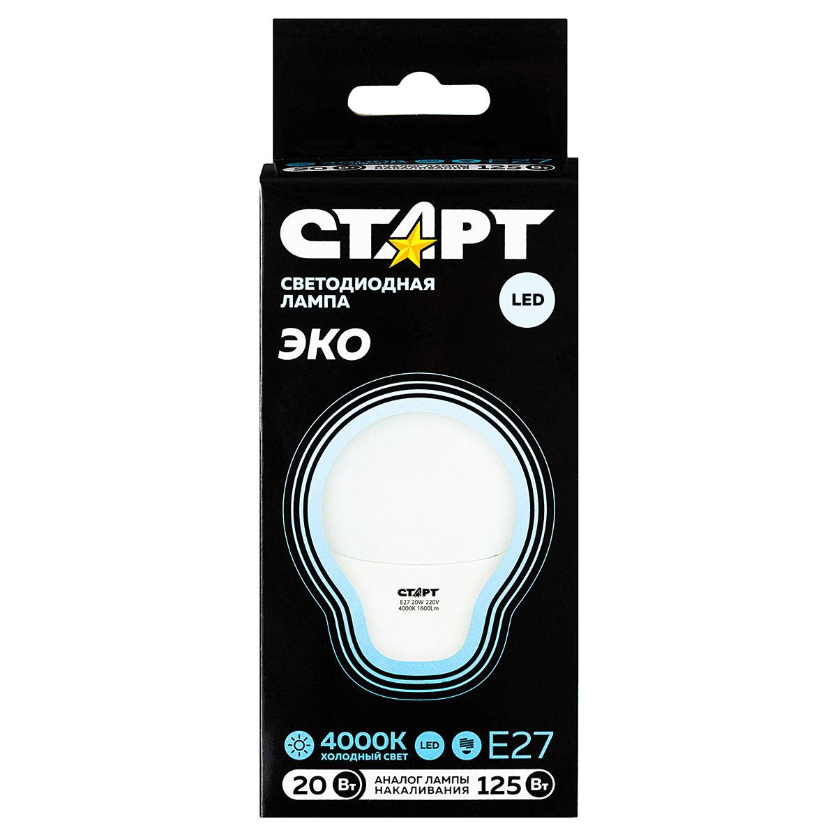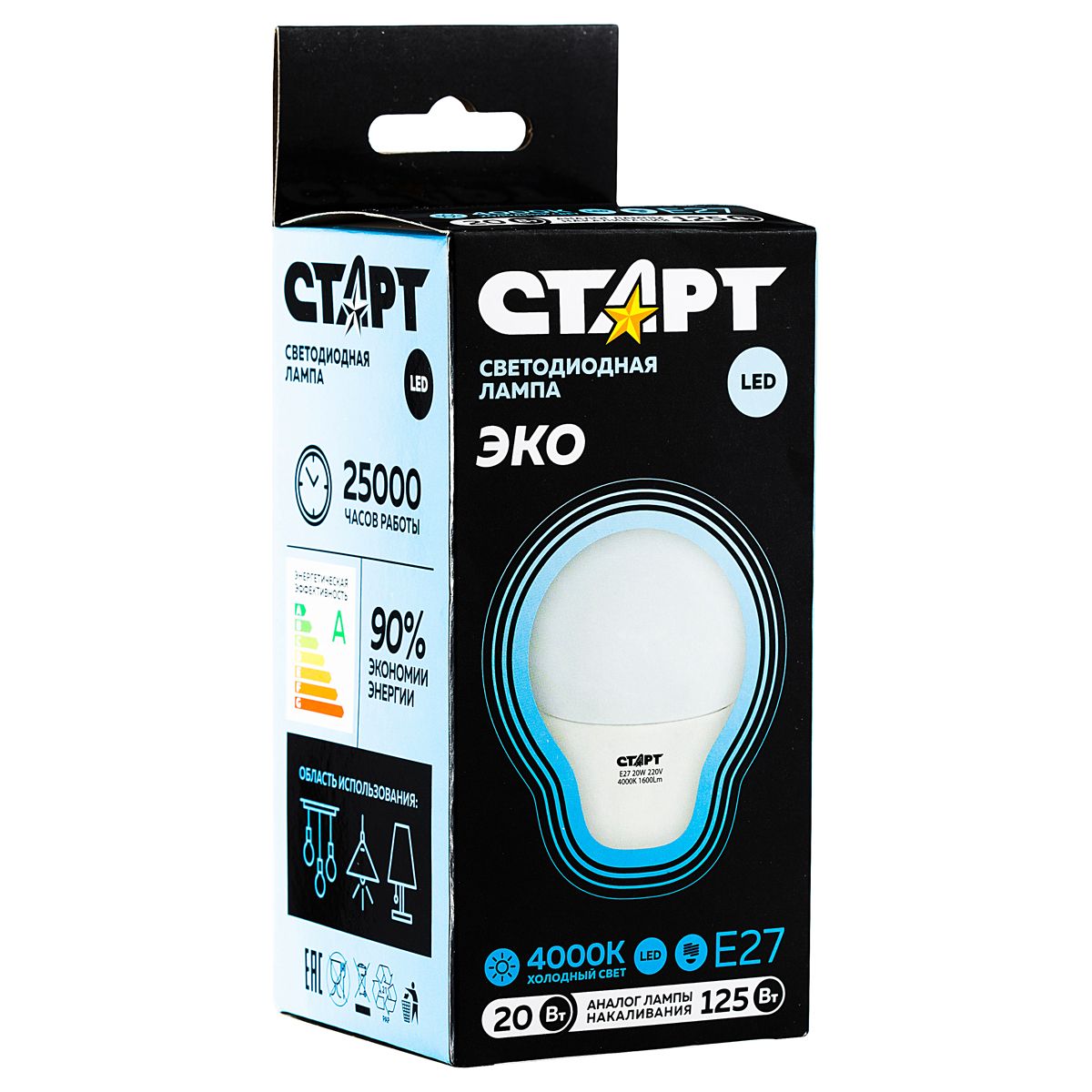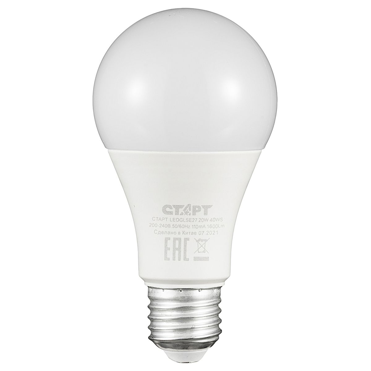 Лампа светодиодная Старт LED, серия "WS" 20W40, тип А "груша", E27, 4000К, нейтральный свет, 25000ч