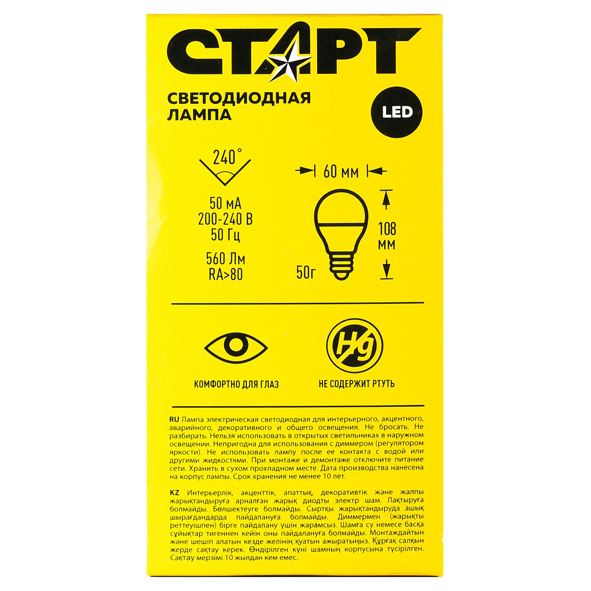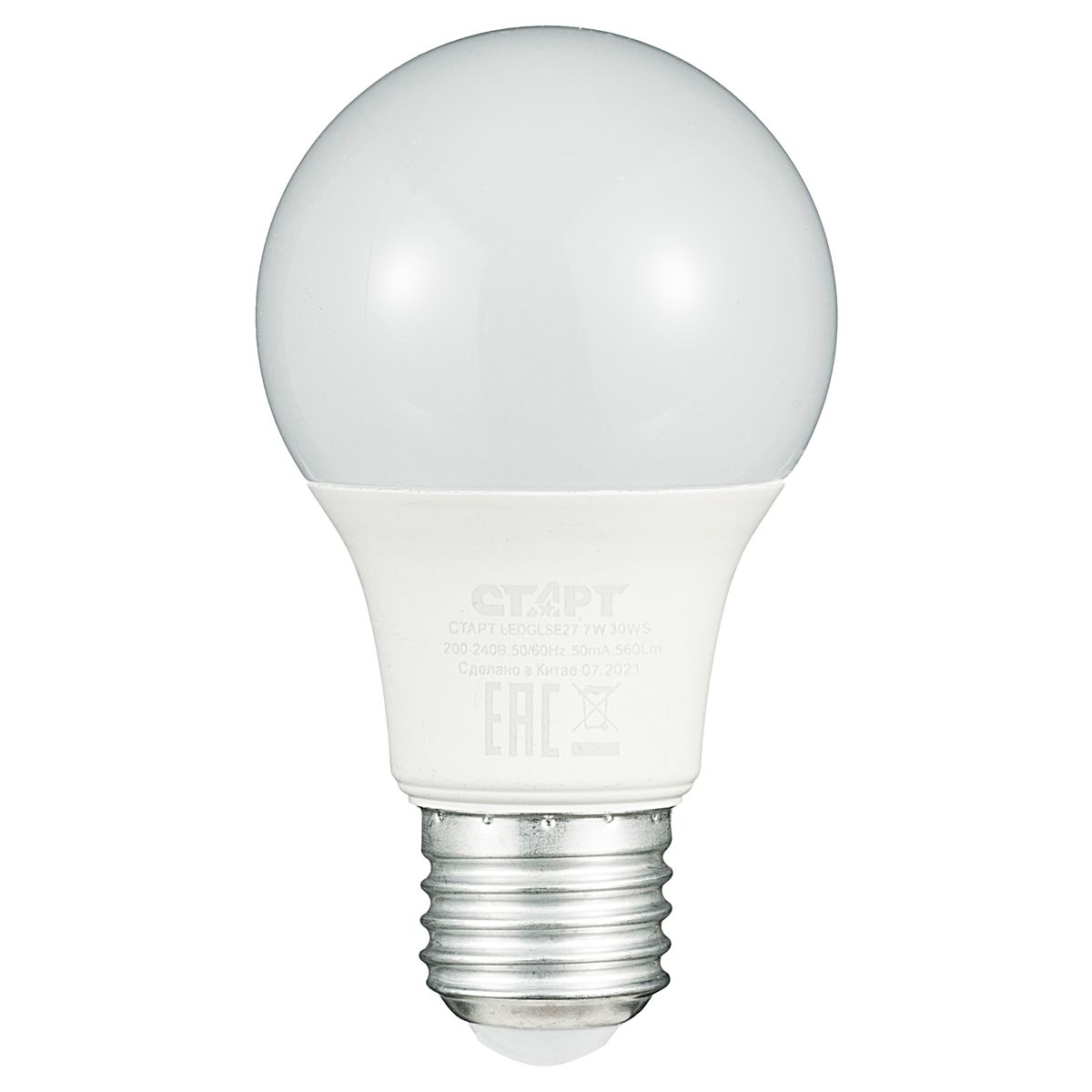 Лампа светодиодная Старт LED, серия "WS" 7W30, тип А "груша", E27, 2700К, теплый свет, 25000ч