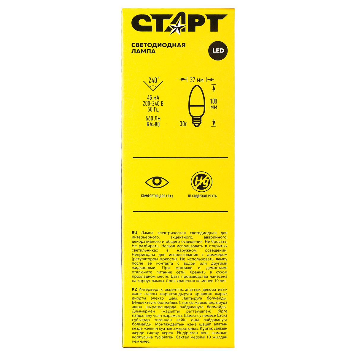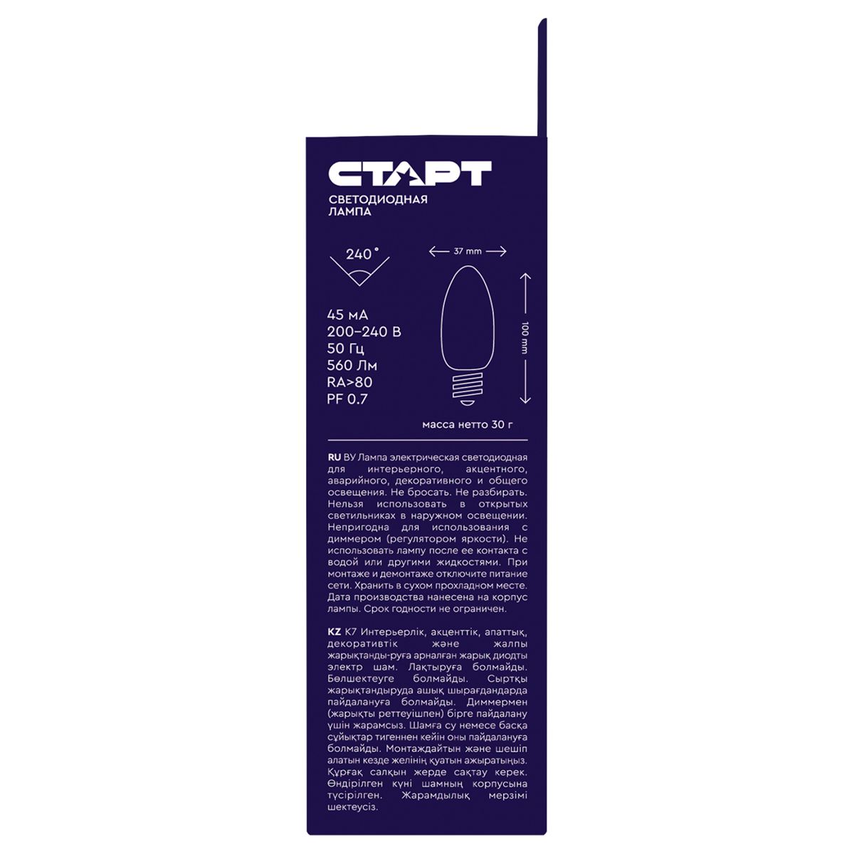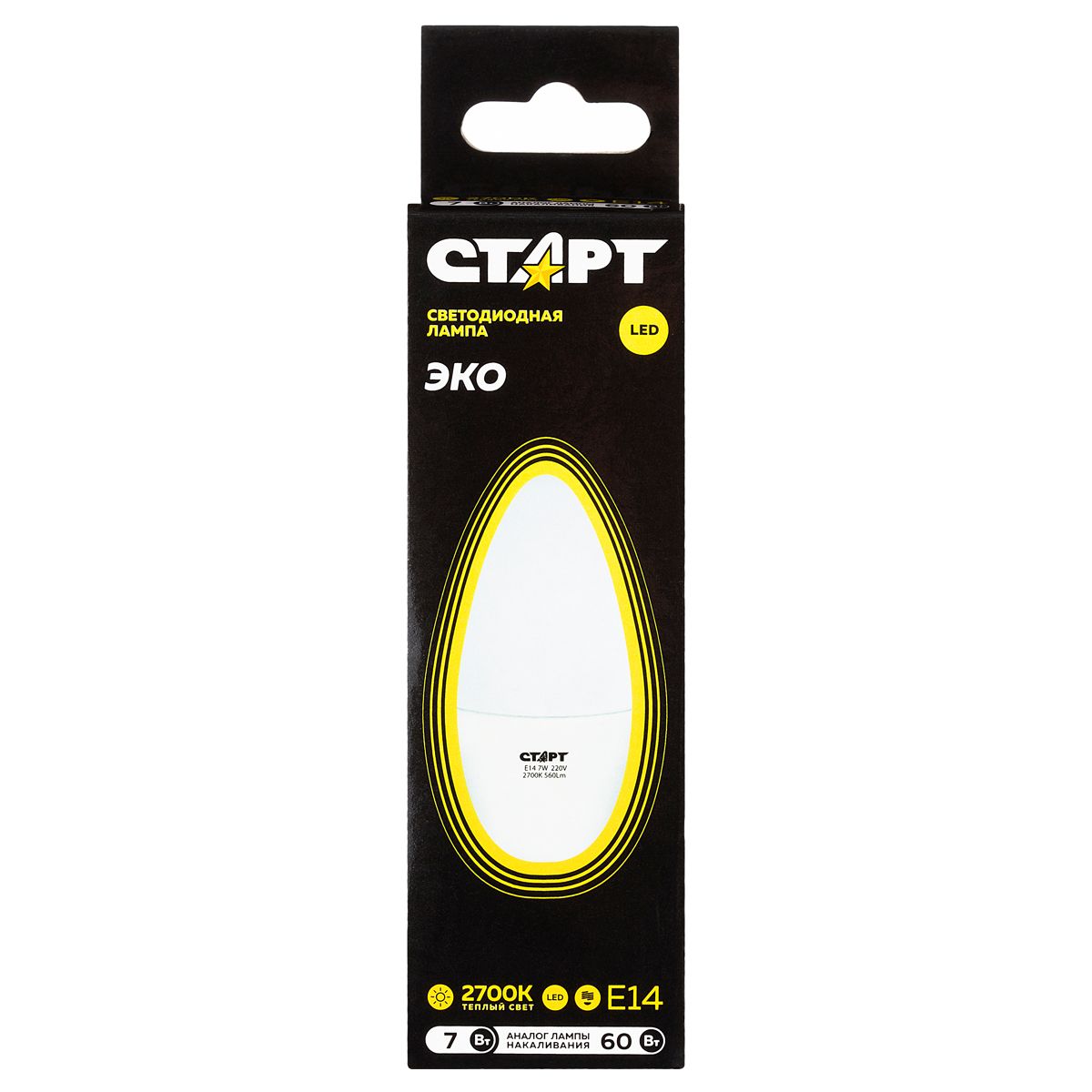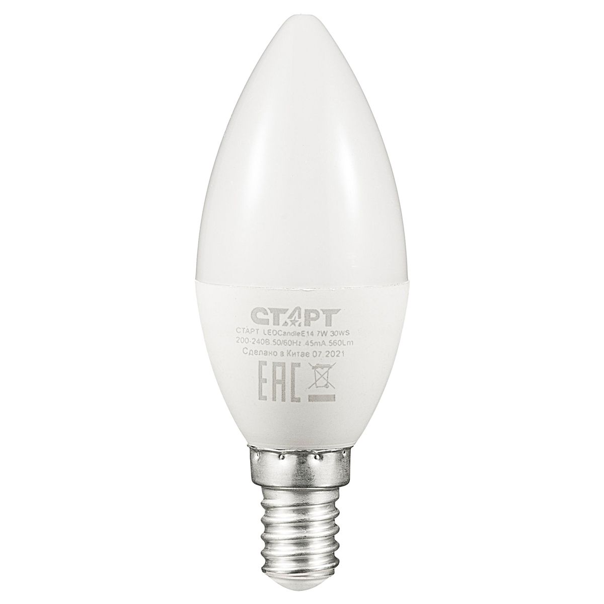 Лампа светодиодная Старт LED, серия "WS" 7W30, тип С "свеча", E14, 2700К, теплый свет, 25000ч