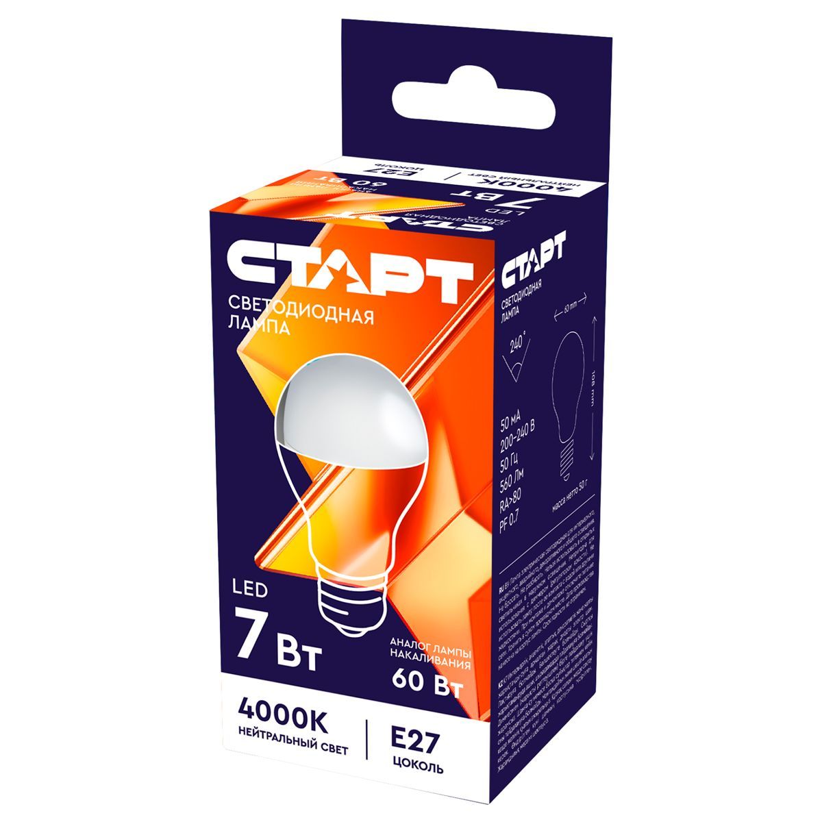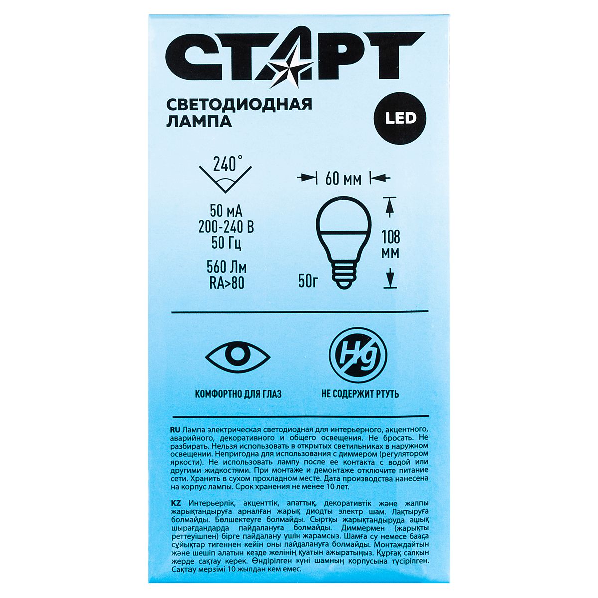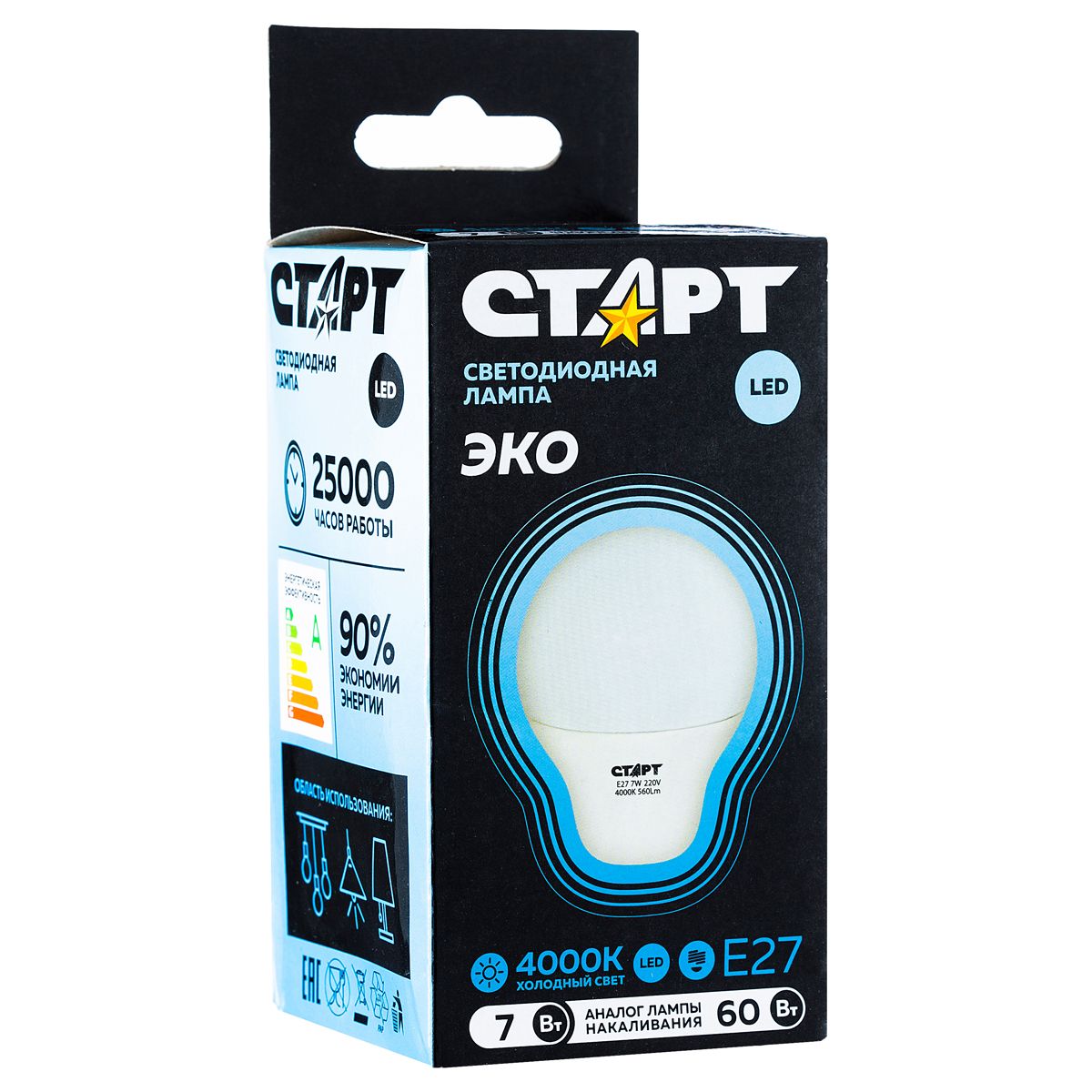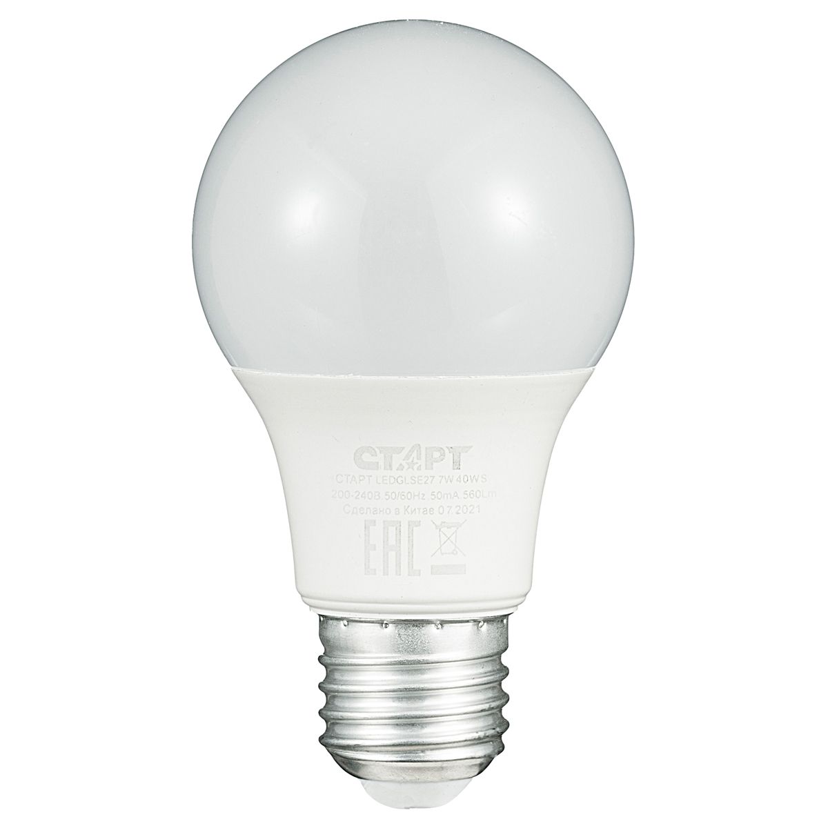 Лампа светодиодная Старт LED, серия "WS" 7W40, тип А "груша", E27, 4000К, нейтральный свет, 25000ч