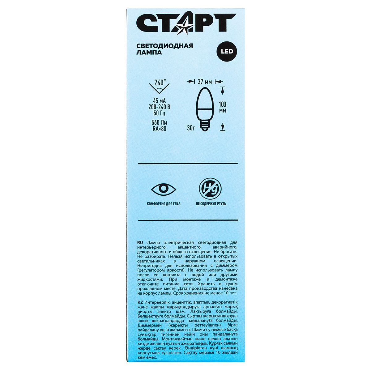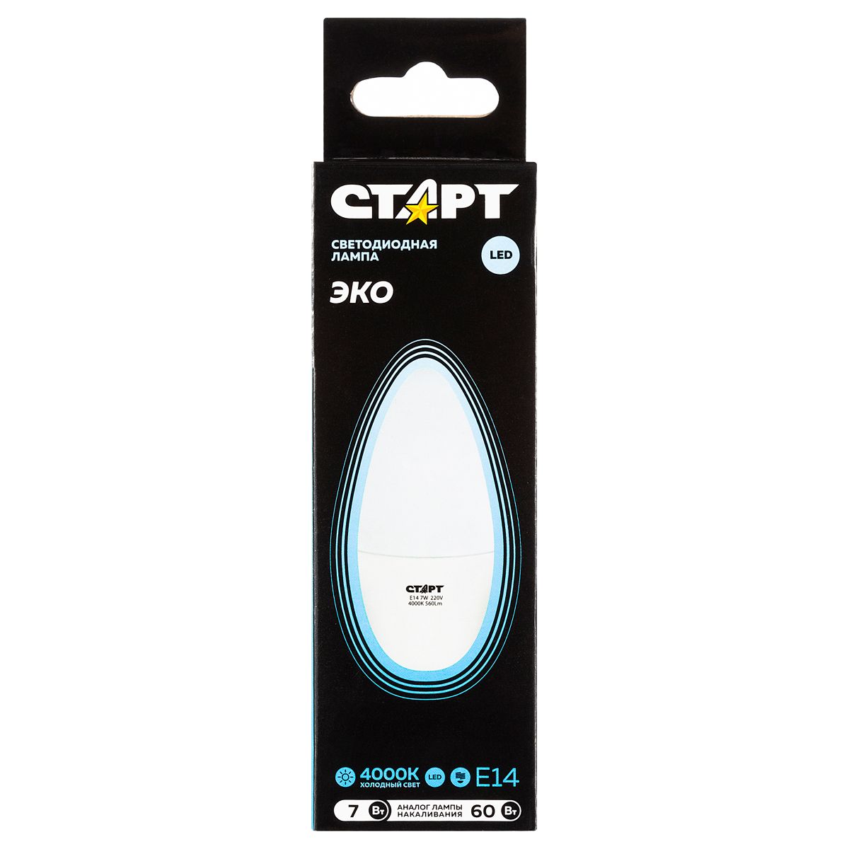 Лампа светодиодная Старт LED, серия "WS" 7W40, тип С "свеча", E14, 4000К, нейтральный свет, 25000ч