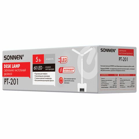 Настольная лампа / светильник беспроводная SONNEN PT-201, органайзер, USB, LED, 5 Вт, 3 режима, белый, 238781
